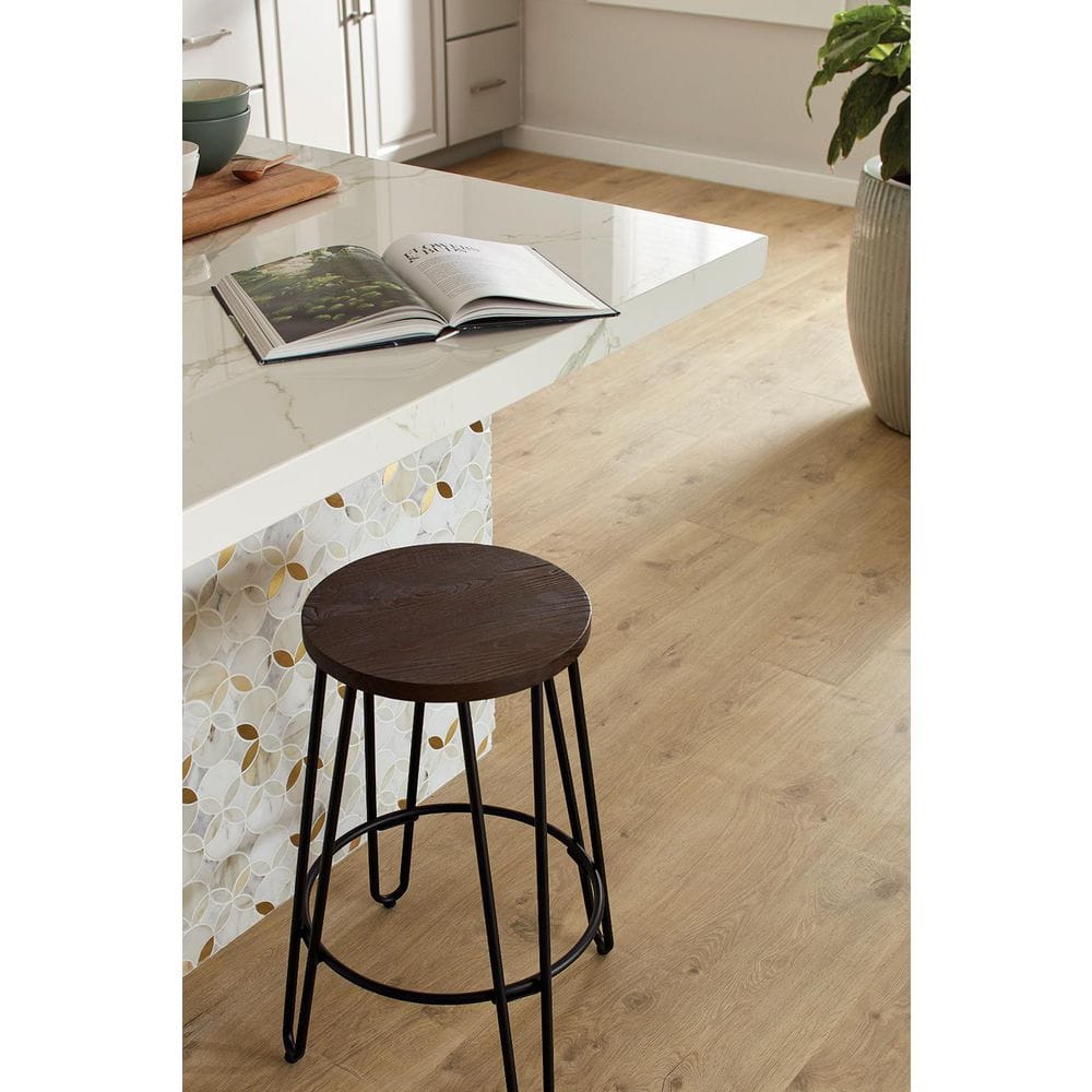 The Sandy Cove Oak Laminate Flooring by Pergo transforms any room with its timeless elegance, infusing spaces with the warmth of natural oak hues. Its standout design feature—a matte texture with sophisticated wood graining—creates a serene yet stylish foundation for modern and traditional decor alike. Consider pairing it with minimalist furniture and soft area rugs to elevate the room's harmony. Essential for luxurious living, this flooring not only enhances the aesthetic appeal but also ensures lasting durability and comfort underfoot.