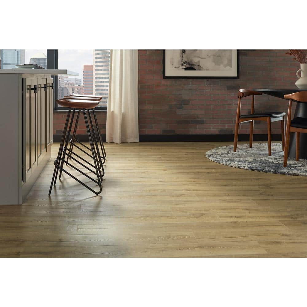 Unveil the sophisticated allure of European design with Pergo's Vienna Oak laminate flooring. Each plank is meticulously crafted to mimic the soft, neutral tones and fine textures of natural wood, enveloping your room in warmth and character. Consider pairing it with rustic décor elements to accentuate its organic beauty. This flooring is not just a surface but an essential component of luxurious living, offering exceptional durability without compromising on style.