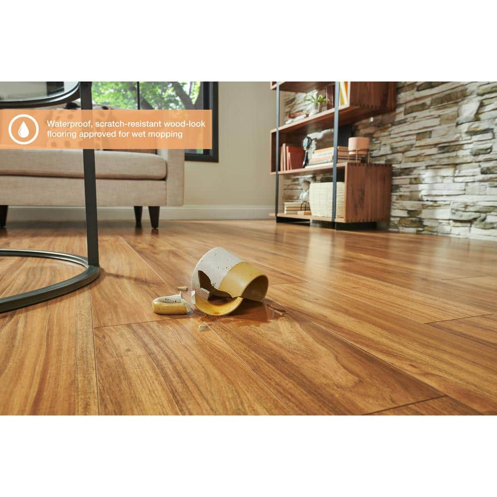 Transform any room with the Pergo XP+ Catalina Acacia Laminate Flooring, offering an exotic wood look with the durability and convenience of laminate. This waterproof flooring is perfect for kitchens and bathrooms, ensuring resilience against spills and wear while maintaining its luxurious appearance.