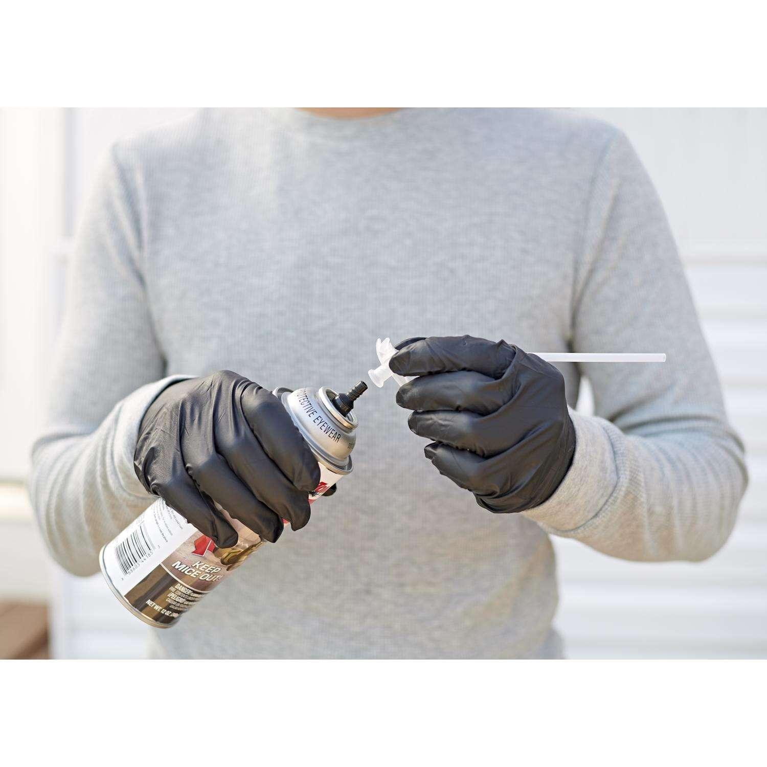 • Spray this rodent barrier in crevices inside and outside your house, including the garage, attic, basement, and foundation