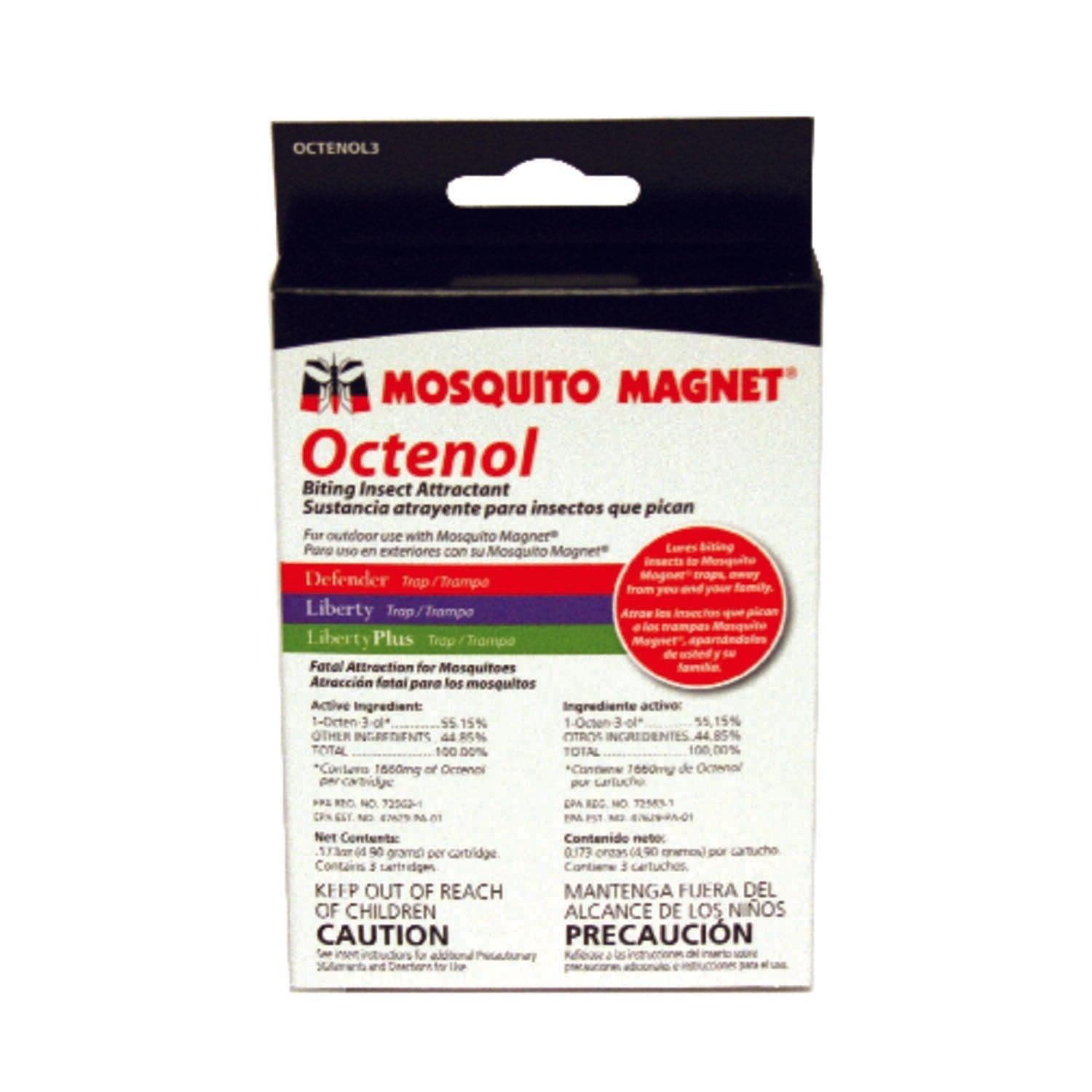 The right attractant can turn your Mosquito Magnet into an even more powerful mosquito killing device. If you live in the northern half of the United States, Canada or in coastal regions, Octenol is an effective as well as economical way to ensure you are getting the most out of your trap and providing your family with maximum protection against flying pests. The EPA registered Mosquito Magnet Octenol is a secondary attractant that mimics human breath, drawing mosquitoes and biting insects to the trap. It is an alcohol-type chemical that has been deemed safe for humans by the U.S. Food and Drug Administration, but it is a vital weapon to have in your arsenal when it comes to killing flying pests! Mosquito Magnet Octenol attracts most mosquito species, including salt marsh mosquitoes, as well as no-see-ums and black flies. It will lure biting insects to the Mosquito Magnet trap where they are captured by becoming entangled in mosquito nets, then dehydrate and die. This makes Mosquito Magnet Octenol the hassle- free way of killing mosquitoes throughout the entire outdoor season. Sit back, relax and enjoy your favorite outdoor activities again, while Mosquito Magnet does all the work!