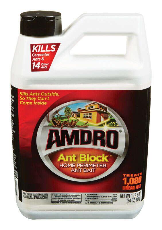 Amdro Ant Block Home Perimeter Ant Bait gives you the power to kill listed ant species outside before they enter your home. Once you lay the bait, worker ants carry it back to the mound thinking its food. Once the queen eats it, the colony is doomed because she can no longer produce worker ants. Use it on lawns, landscaped areas or around structures. Each bottle contains enough bait to treat the average home up to six times.