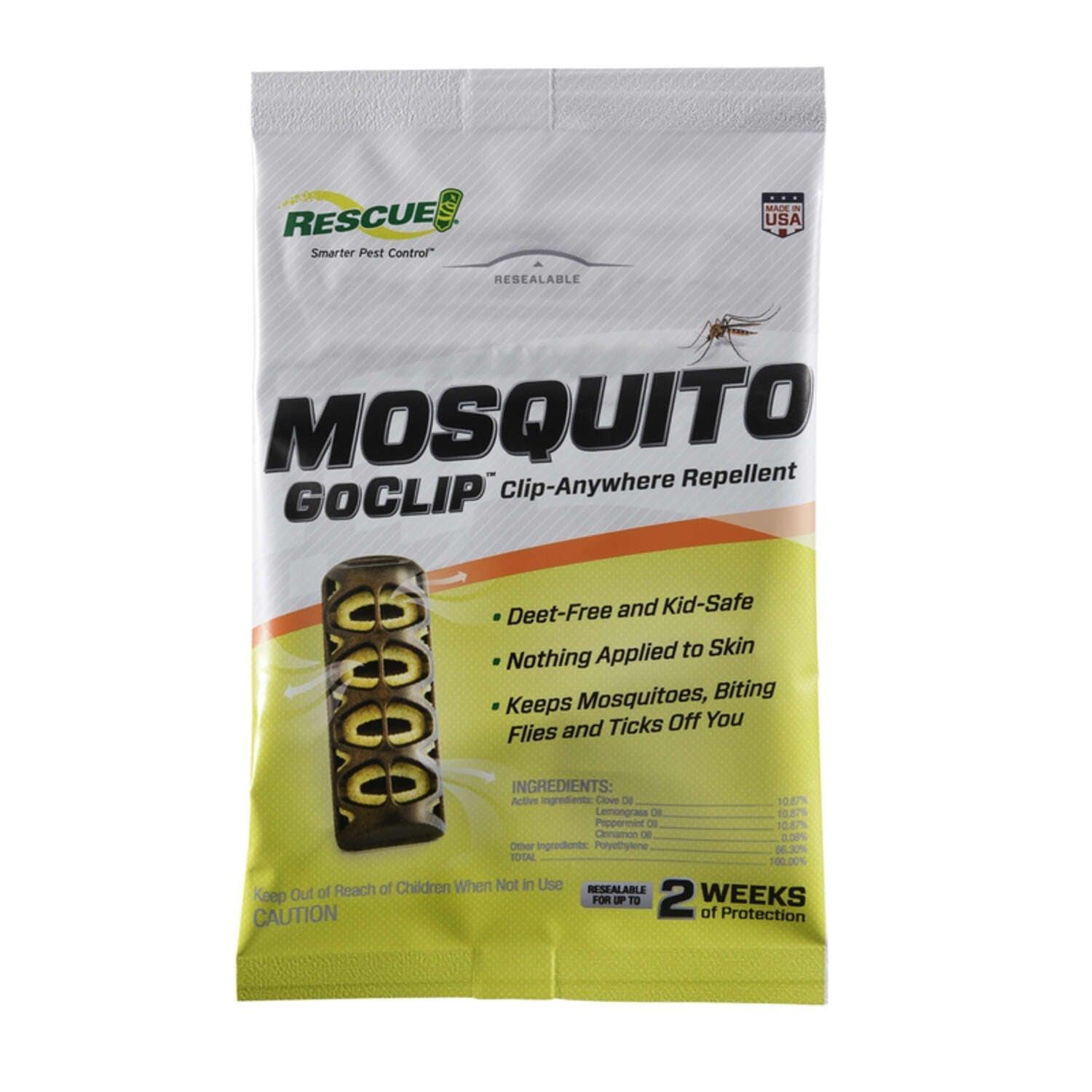 RESCUE! Mosquito GoClip conveniently attaches to clothing, hats, backpacks, lanyard, strollers and pet collars - creating a zone of protection during outdoor activities. Controls multiple species of mosquitoes as well as biting flies, black flies and ticks.