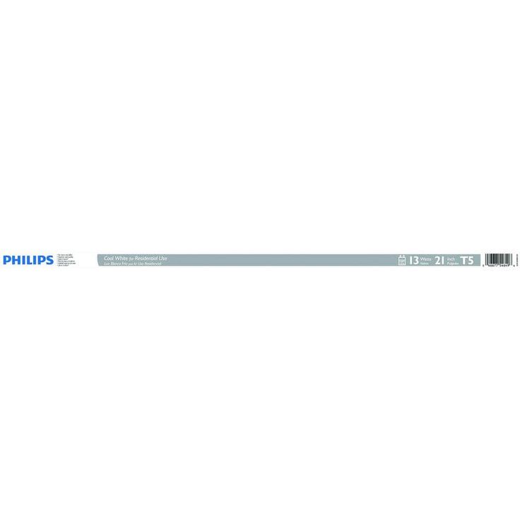 For effective residential and commercial lighting, select the Philips 13-Watt 12 in. T5 Cool White Linear Fluorescent Light Bulb (F13T5/CW 4100K). It produces cool, white light and can last up to three years. The T5 linear fluorescent bulb has a medium, bi-pin base. It is meant for indoor use.