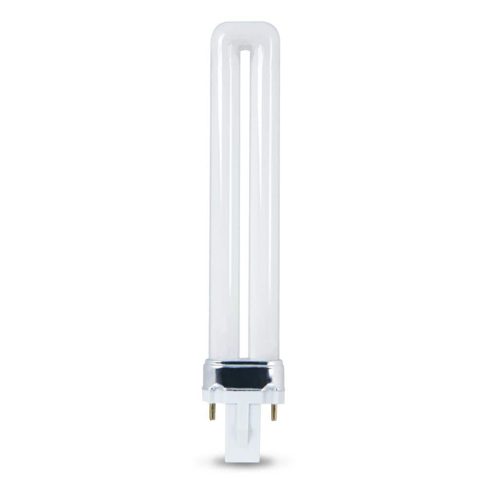 Compact 9-watt PL twin-tube CFL with G23 2-pin base delivers soft white 2700K light for general purpose fixtures. Non-dimmable, plug-and-play design works with existing ballasts and is ideal for residential or commercial use.