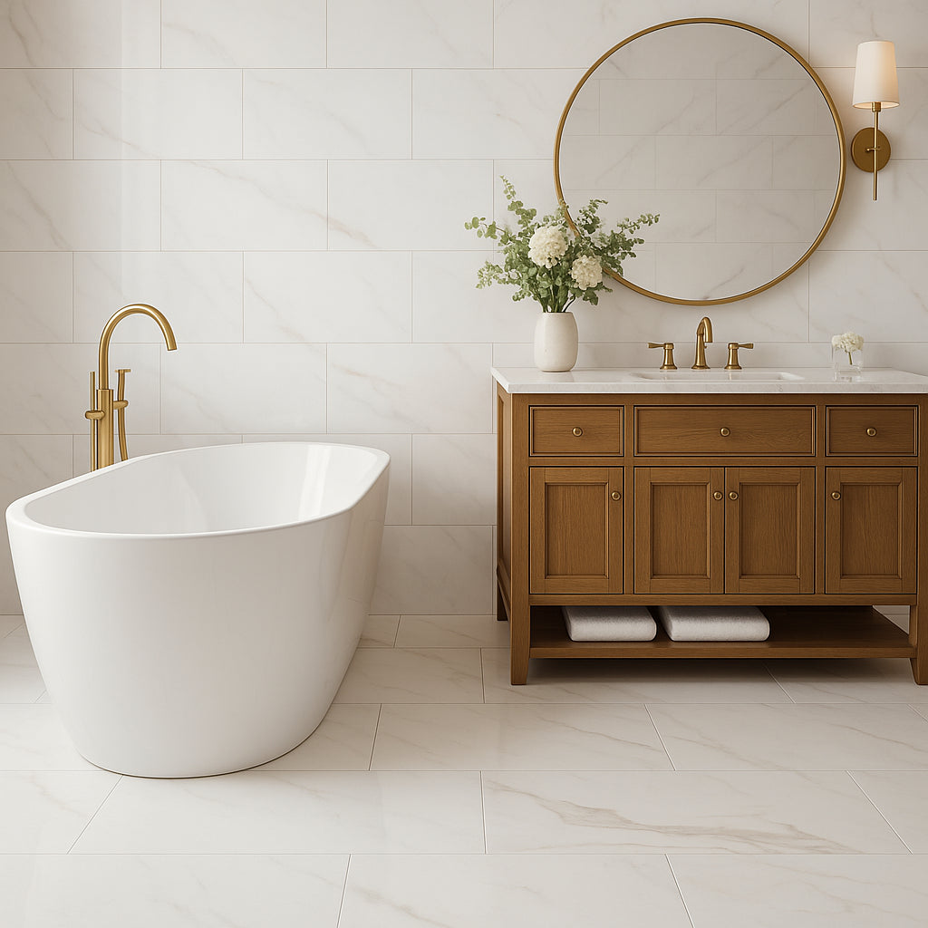 - Durable Porcelain: Waterproof and suitable for residential and light commercial use.