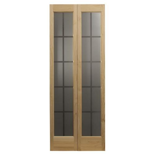Pinecroft Mission 30-in x 80-in Unfinished Pine Wood 2-Panel Square Frosted Glass Unfinished Pine Wood Bifold Door (Hardware Included)