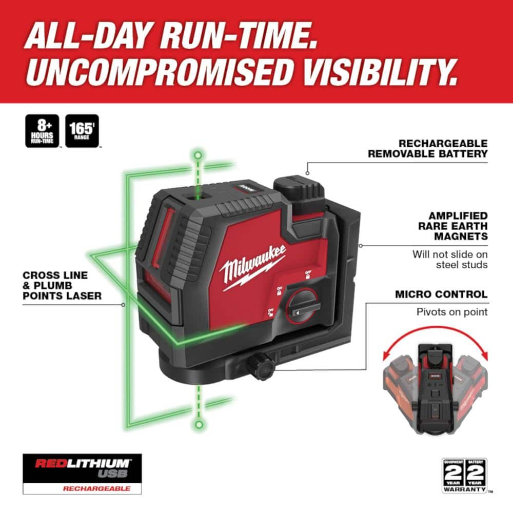 • Extended Runtime: M12 REDLITHIUM 4.0 XC battery delivers 15+ hours of continuous laser operation.