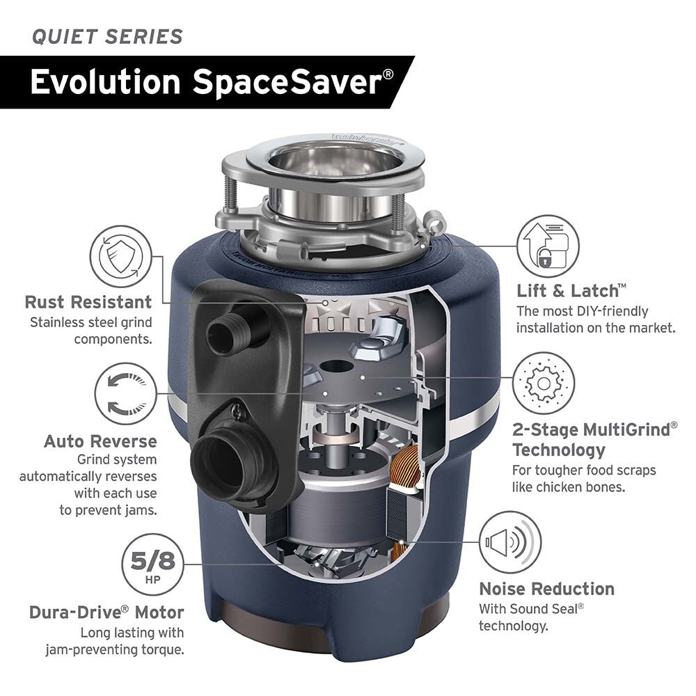 InSinkErator Evolution SpaceSaver 5/8-HP Continuous-Feed Garbage Disposal, SoundSeal, MultiGrind, 34.6-oz