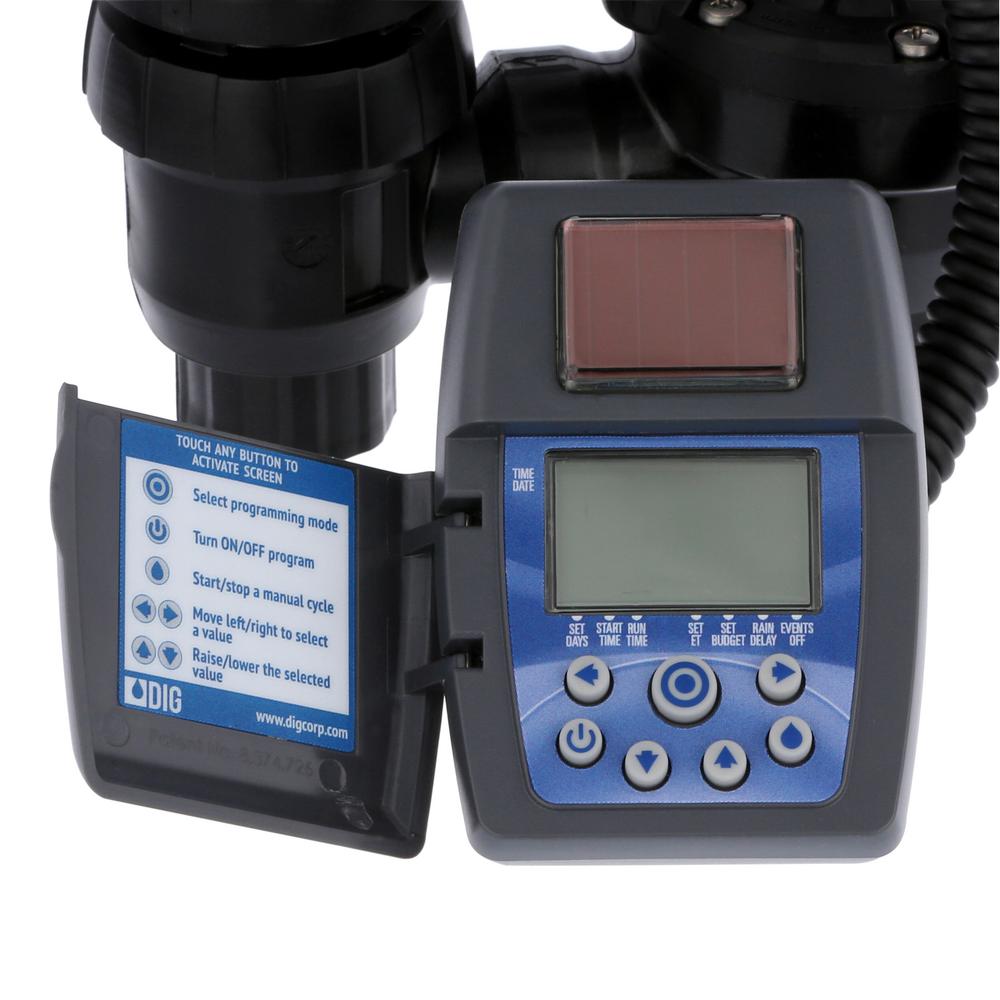 DIG offers a smart and sustainable solar powered irrigation timer with 3/4 in. anti-siphon valve, powered solely by ambient light (solar) and doesn't use batteries or an AC power source. The ECO1 requires no direct sunlight and can obtain enough power from surrounding light to operate both day and night in any weather condition. In addition, the ECO1 employs 20 preset SimpleSmart programming which automatically adjusts daily irrigation schedules and help eliminate over and under watering - ensuring a healthy landscape while saving water.