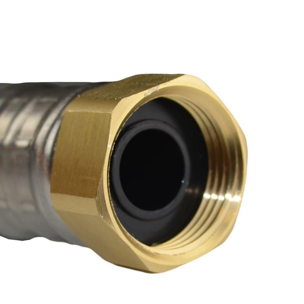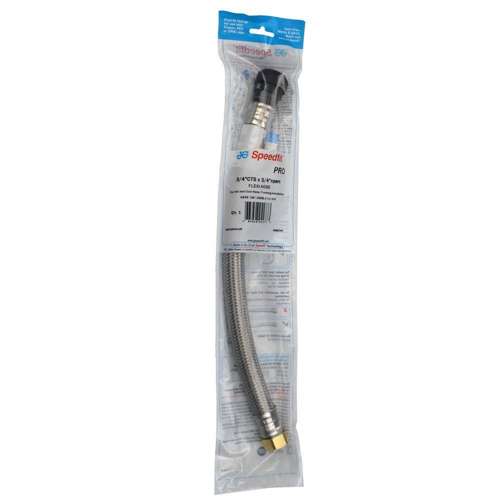 JG Speedfit Flexi Hose Water Supply Connectors are manufactured with a durable inner core, covered with braided stainless steel wire and built to last. They are lead-free compliant, corrosion resistant and the large inside diameter allows for higher flow capacity. Connection points have a double crimp for greater reliability. Flexi Hoses can be used in accessible locations to quickly and easily install male threaded appliances, such as water heaters and water softeners. They incorporate a 3/4 in. hex nut on 1 end for connection to the appliance and JG Speedfit’s push-fit technology on the other allowing you to connect to either copper CPVC or PEX pipe with no tools, torches or glue required. The Twist and Lock feature is an additional benefit providing greater compression on the O-ring seal which locks the fitting in place for greater security.