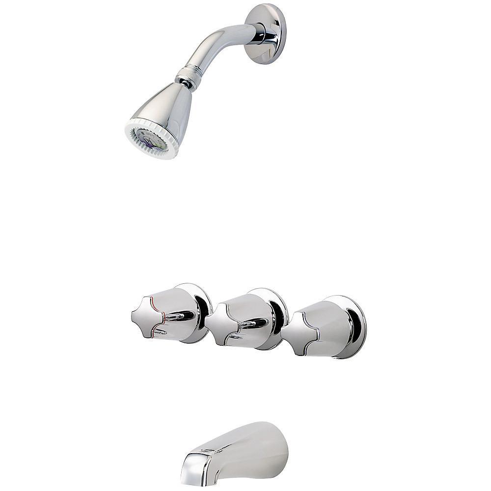 3-Handle 1-Spray Tub and Shower Faucet with Metal Verve Knob Handles in Polished Chrome (Valve Included)