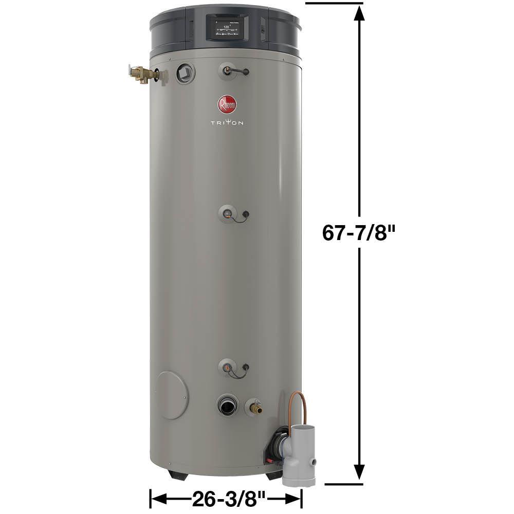 • Quality built to lost triton is proven to last an average of 5 years longer than the industry standard for commercial gas water heaters thanks to the high quality ASME grade steel triple pass heat exchanger, built-in condensate neutralizer, and advanced power anodes