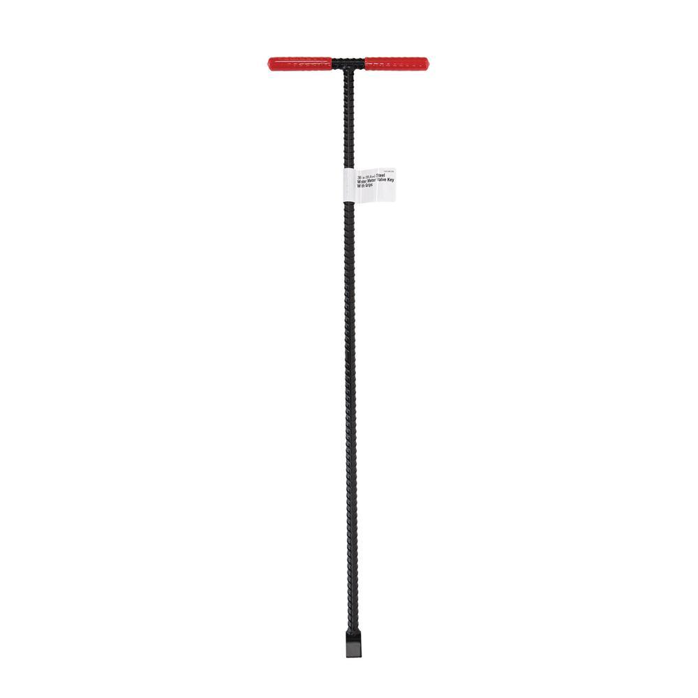 This water meter valve wrench turns on and off the main water supply valve for a house or building. Its extended 36 in. length is ideal for reaching into shallow meter/valve boxes that are less than 30 in. deep. It features a 9 in. wide tee handle and a vinyl-grip handle for comfort.