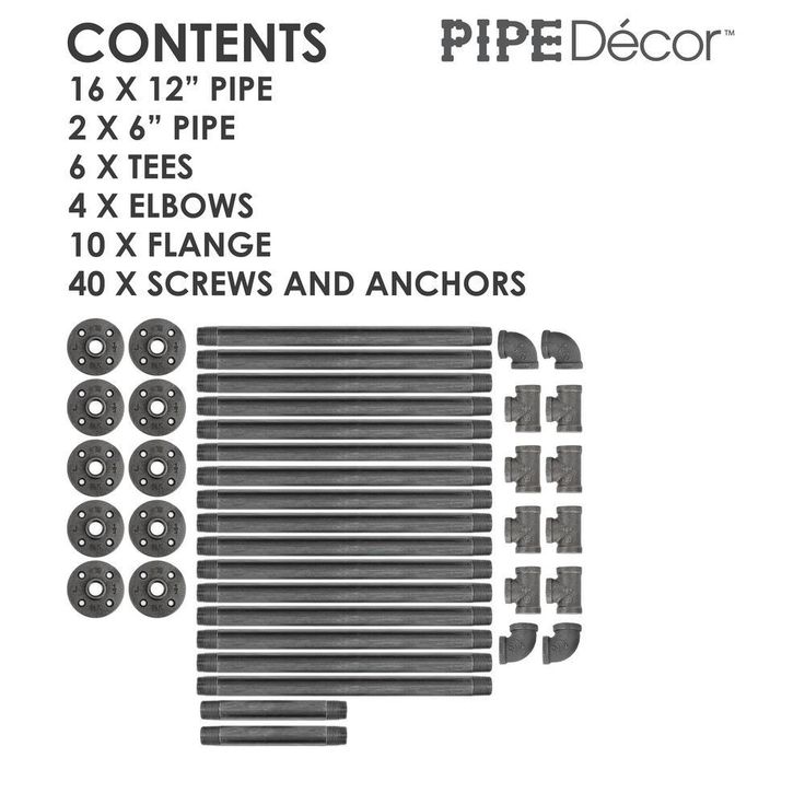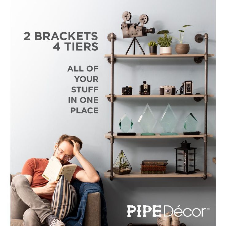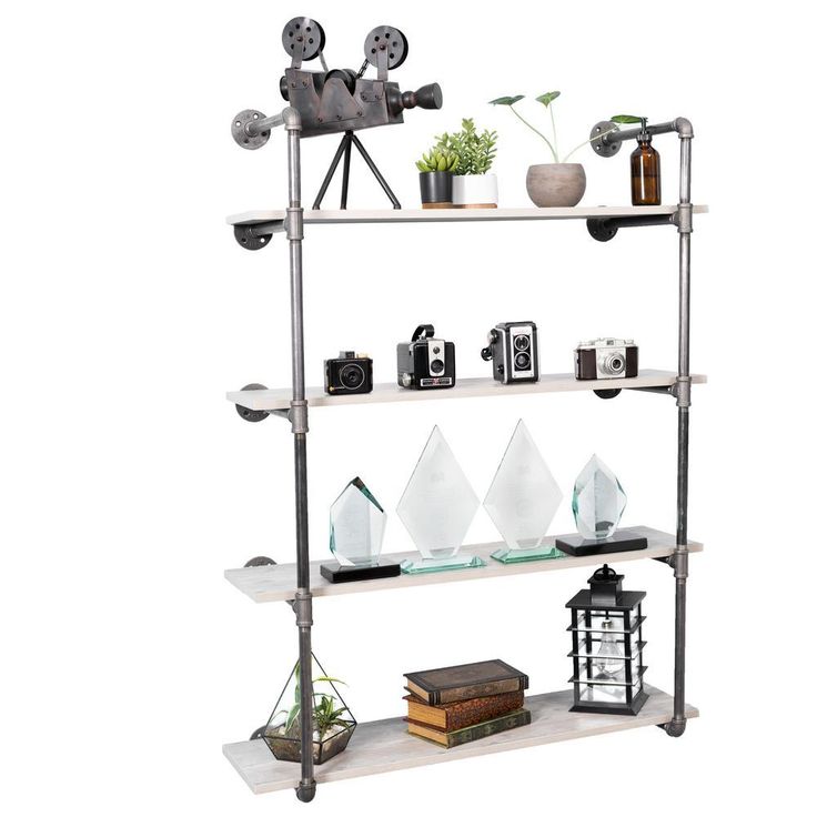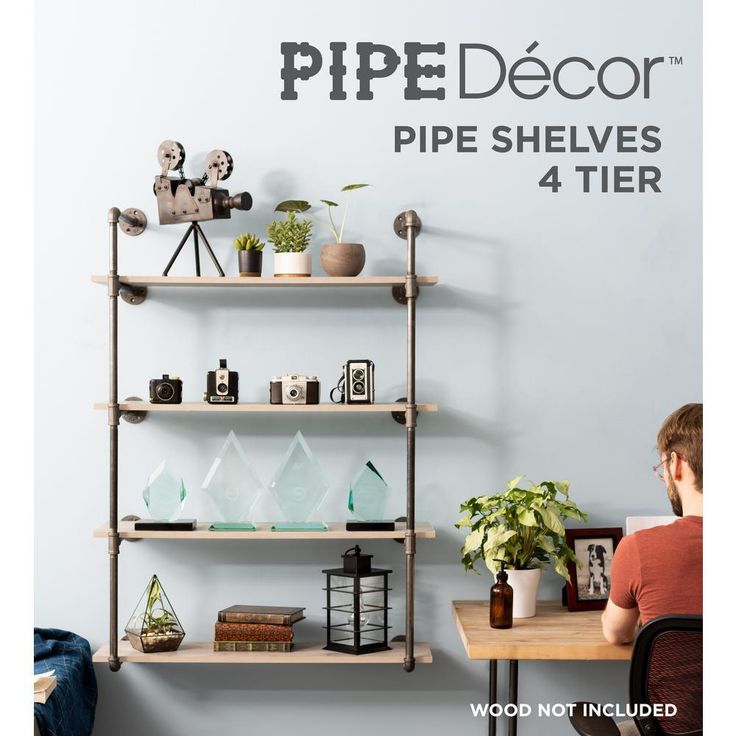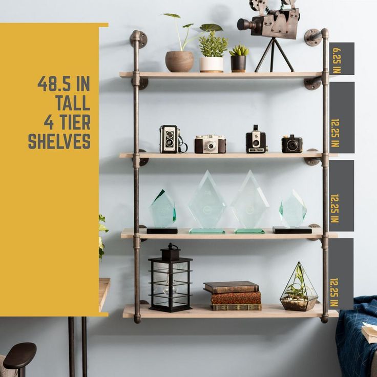 1/2 in. Black Pipe 11.75 in. D x 48.5 in. H Wall Mounted 4-Tier Shelf Kit