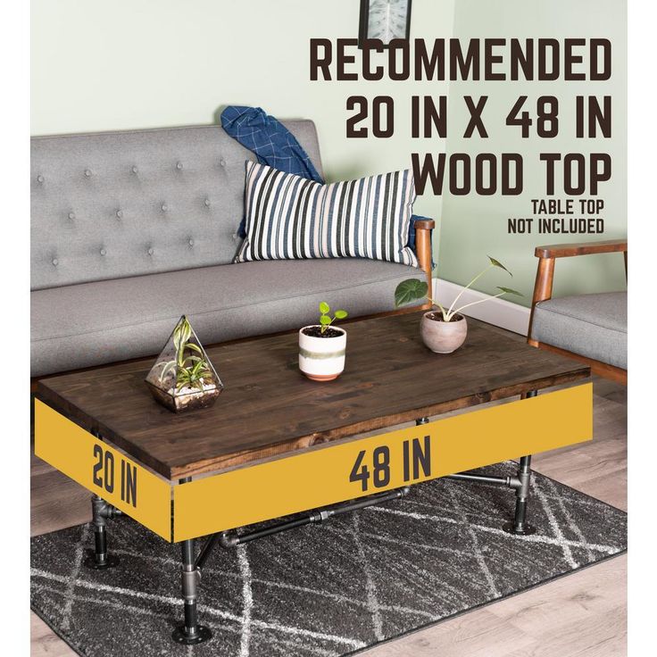 3/4 in. x 3.8 ft. L x  16.5  in. H Black Steel Pipe Loop Design Coffee Table Kit