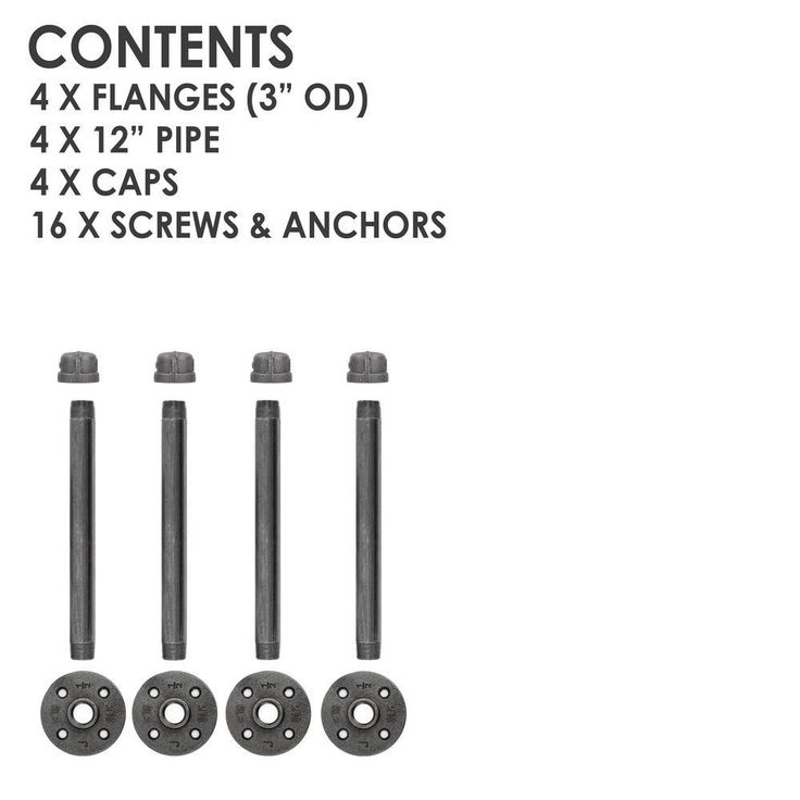 1/2 in. x 1 ft. L Black Pipe Wall Mounted Clothing Bracket Kit (Set of 4)