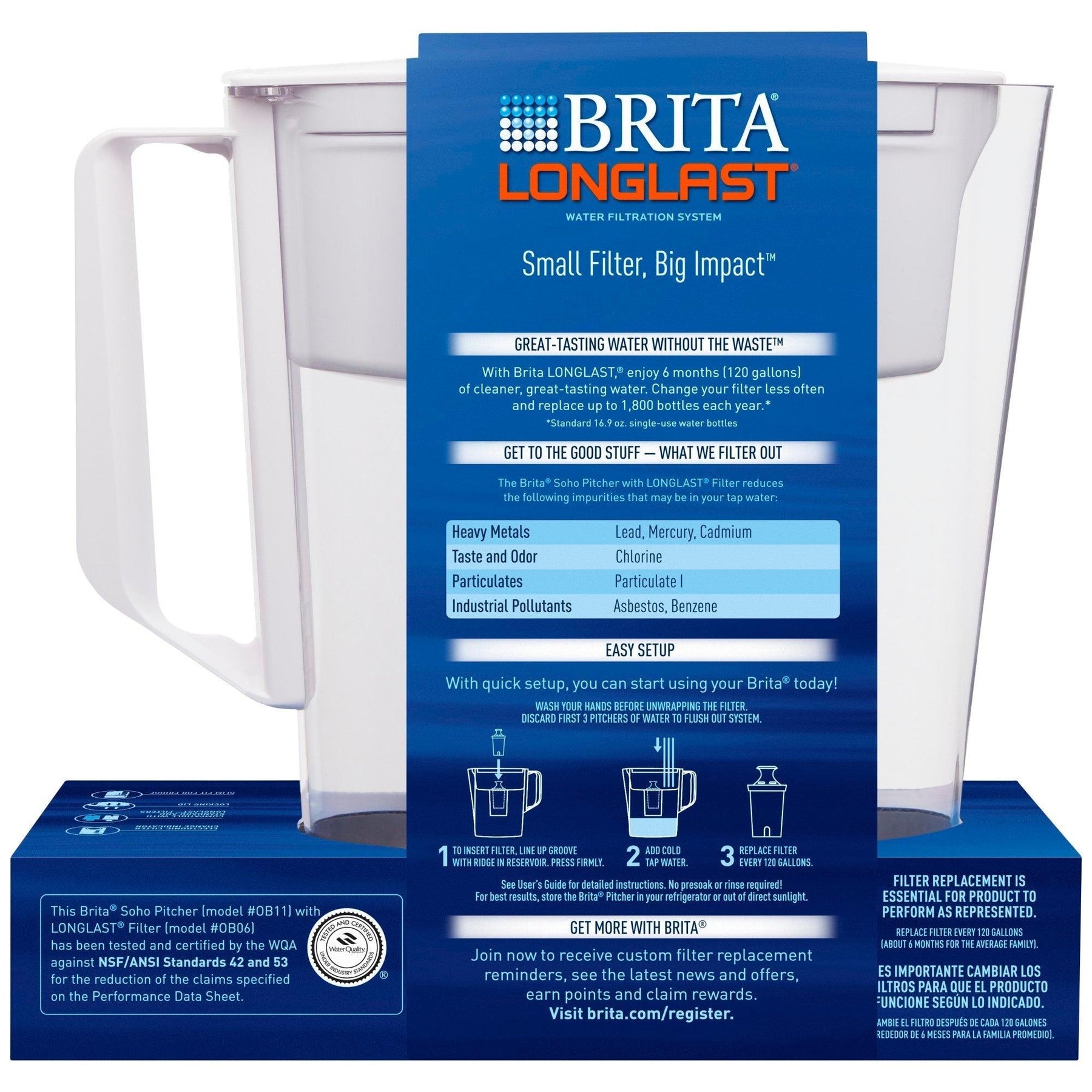 Brita Soho Water Filter Pitcher with Longlast Filter, 6 Cup - White