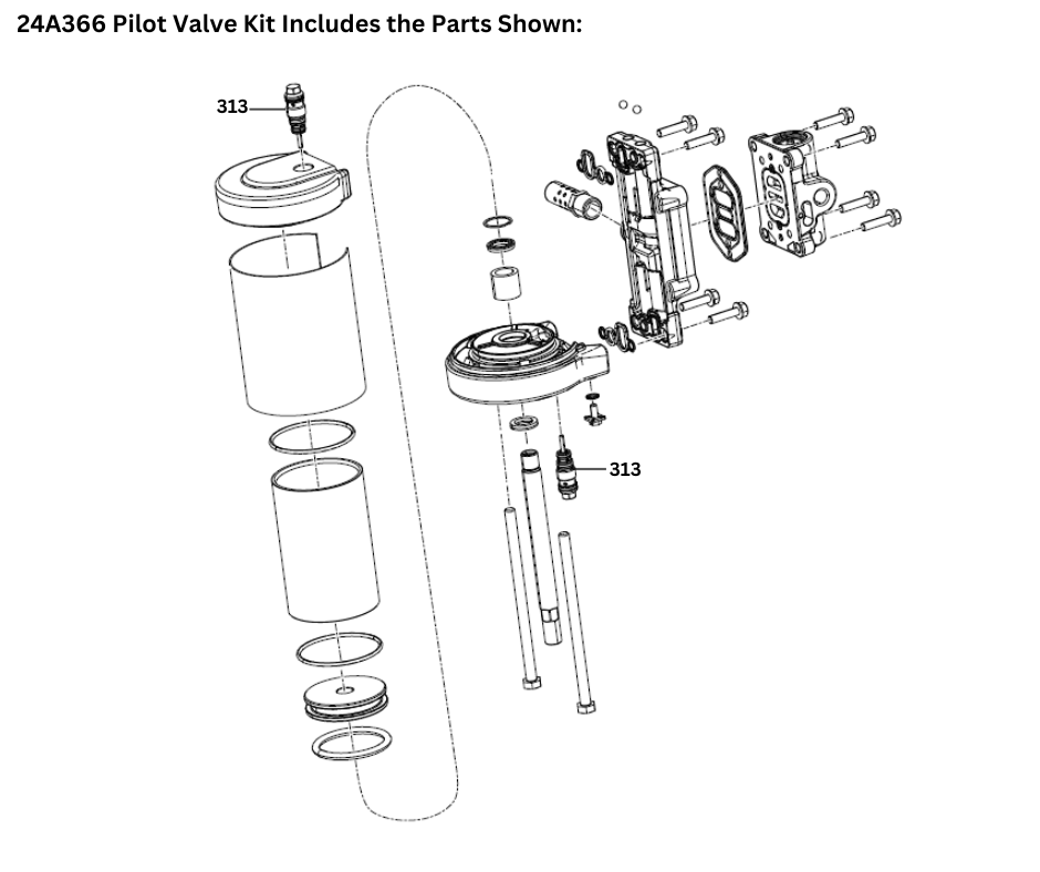 A: Yes—an exploded diagram indicates the kit includes multiple parts/components as shown for the 24A366 pilot valve kit.