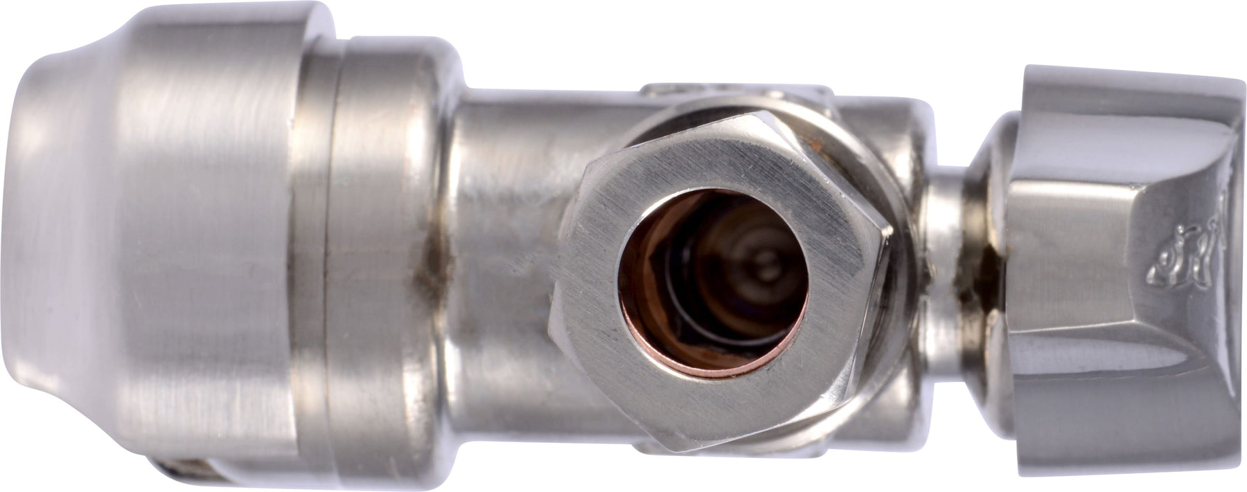 This compact angle stop adds a quiet sophistication under sinks and behind toilets, where details matter. The brushed nickel sheen feels tailored and modern, while the minimal quarter-turn handle keeps the silhouette clean. Pair it with matching nickel fixtures and crisp plumbing lines for a cohesive, elevated look. Functional and polished, it’s a small luxury that refines everyday living.