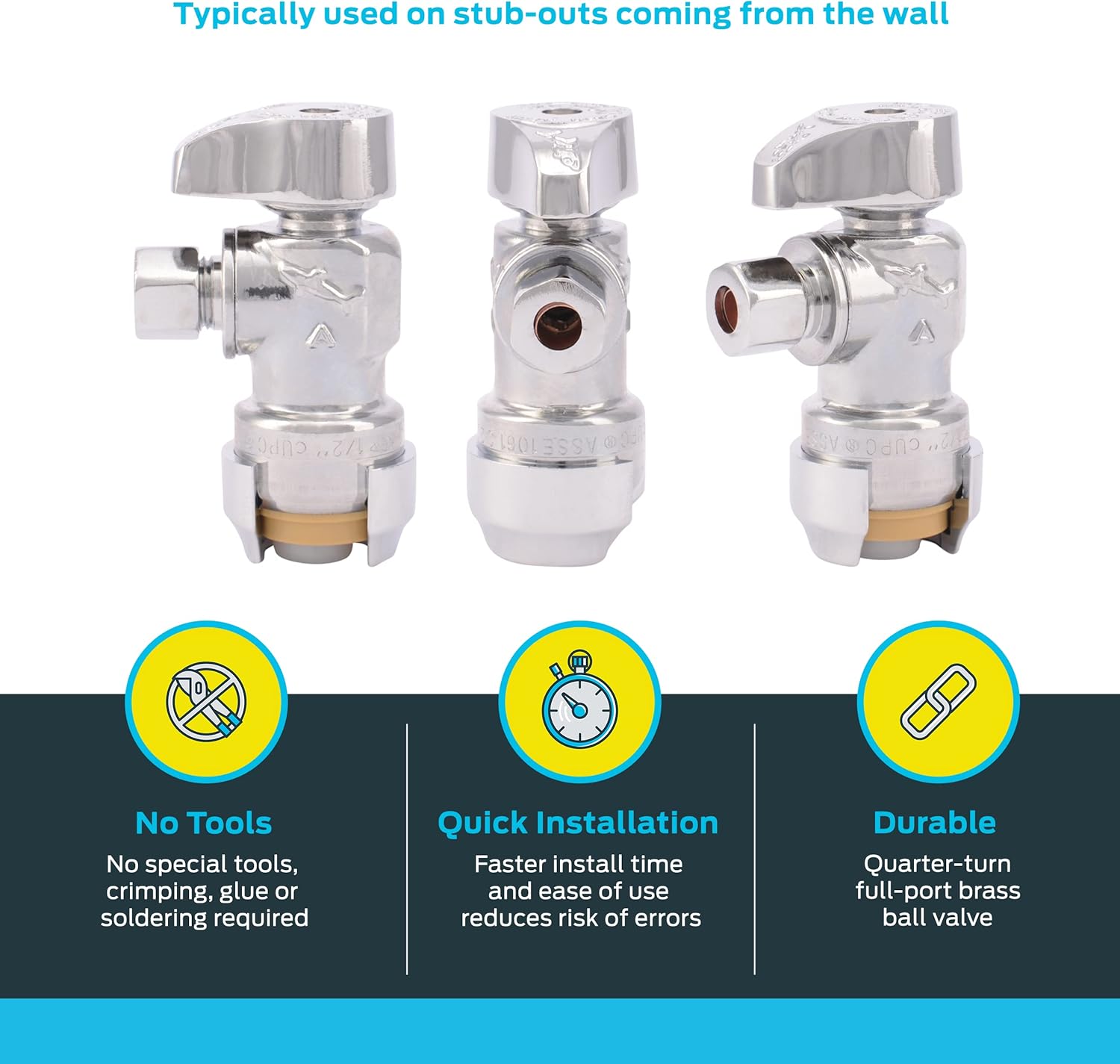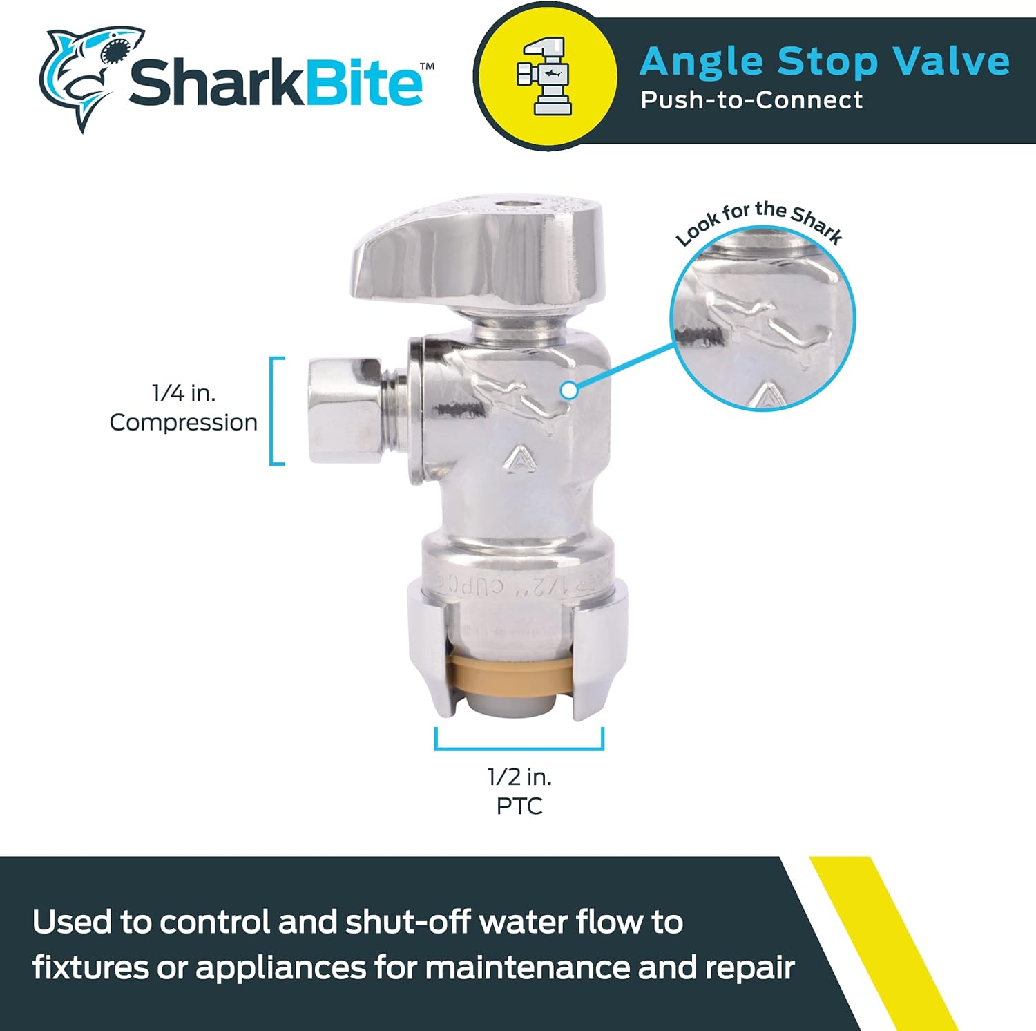 Choose this SharkBite angle stop for fast, reliable shutoff and a clean, professional finish—install in minutes.
