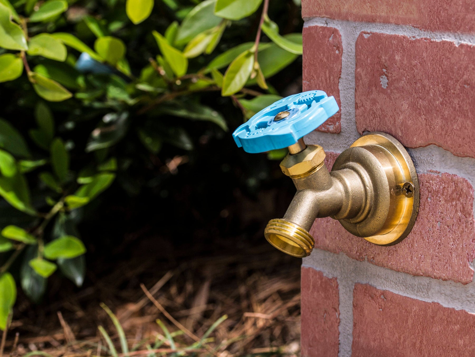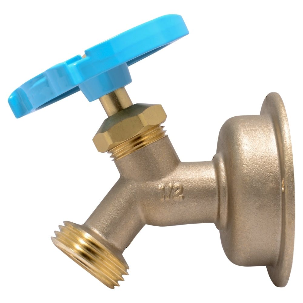 This hose bibb brings a refined brass silhouette to your exterior, punctuated by a fresh blue handwheel that feels modern and functional. Its compact profile sits neatly against brick or siding, adding a purposeful, architectural touch. Style it with matching brass hose accessories for a cohesive look that elevates everyday watering. A small luxury that makes outdoor living both beautiful and effortless.