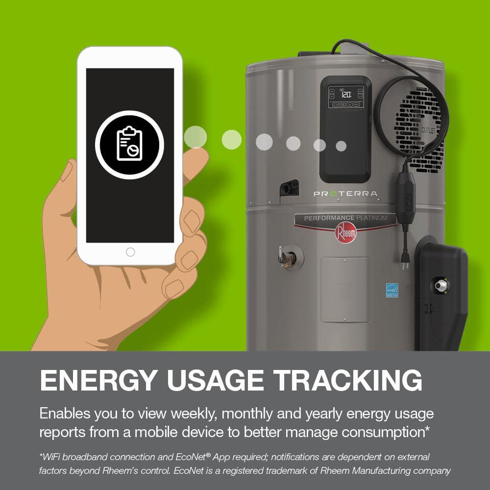 The Rheem ProTerra 80 Gallon Smart Heat Pump Water Heater is your eco-friendly solution to home water heating. Boasting over 4.5 times the efficiency of standard gas models, it reduces energy costs by up to 55%. Equipped with built-in Wi-Fi, LeakGuard, and auto shut-off features, it's both smart and safe.