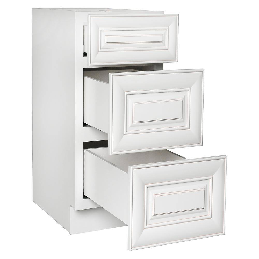 Enhance your kitchen with the Plywell Antique White Base Drawer Unit, featuring solid plywood construction for durability and smooth ball-bearing glides for ease of use. With its classic antique white finish, this cabinet unit adds timeless elegance and ample storage space to any kitchen or bathroom.