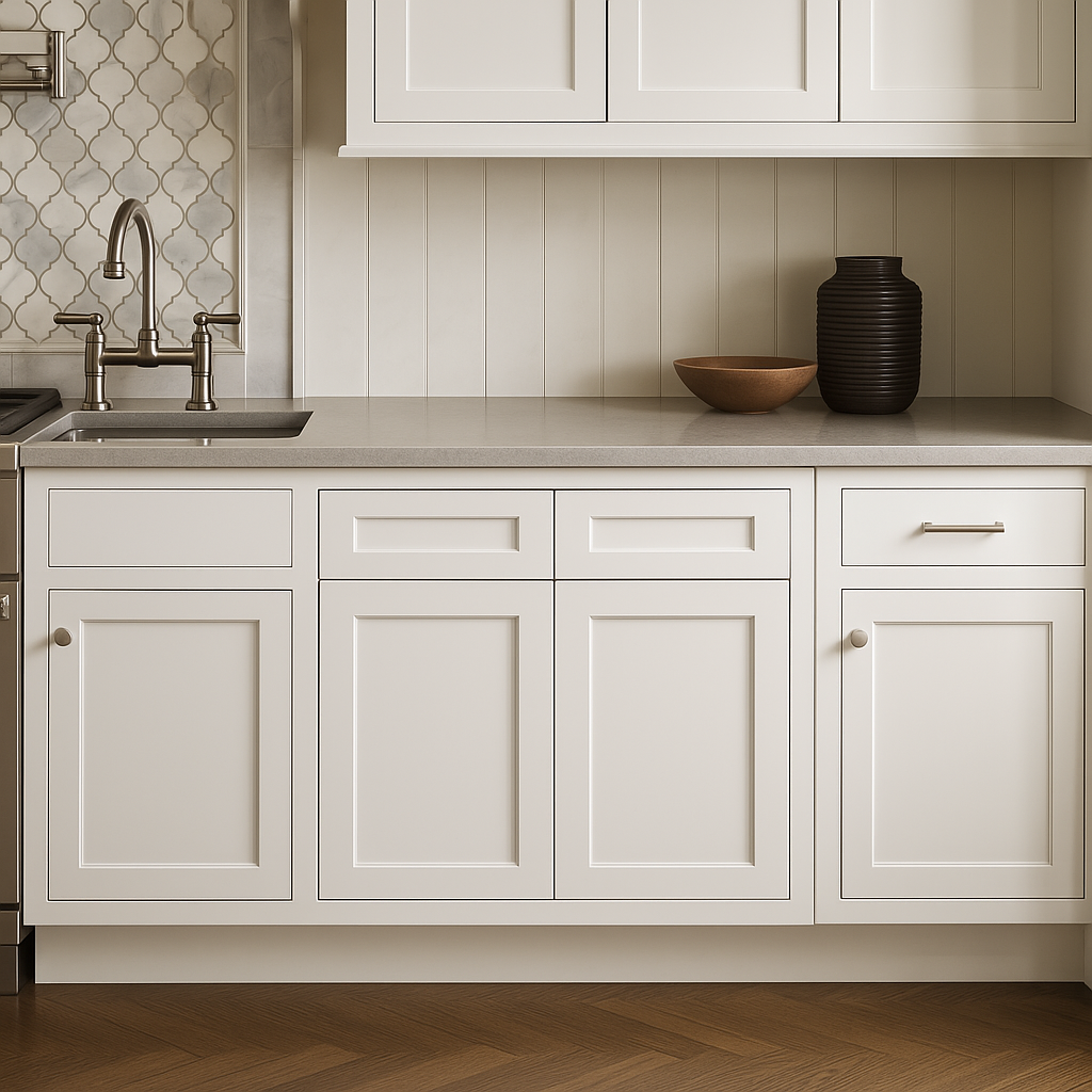 The Plywell Shaker Base Cabinet offers a blend of elegance and practicality, featuring solid wood doors, dovetail drawers, and a durable plywood construction. Its soft-close mechanisms and adjustable shelves make it a versatile addition to any kitchen.