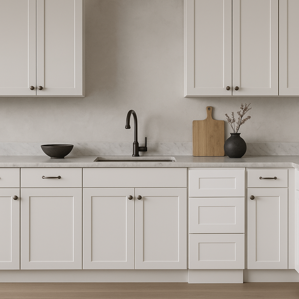 The Plywell Shaker Base Cabinet offers a modern design with durable plywood construction and soft-close drawers. Perfect for enhancing kitchen storage and style.