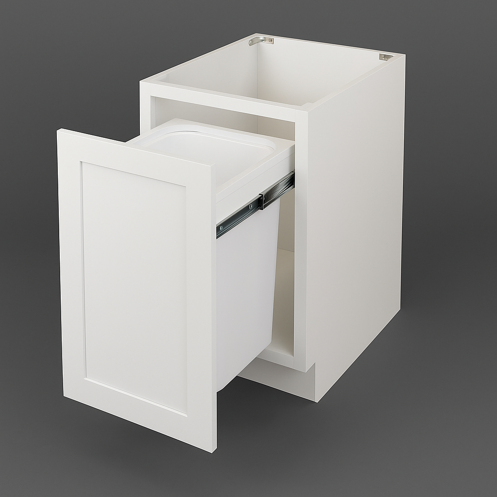 Plywell Shaker Base Cabinet with Waste Basket Holder, Ready to Assemble, White
