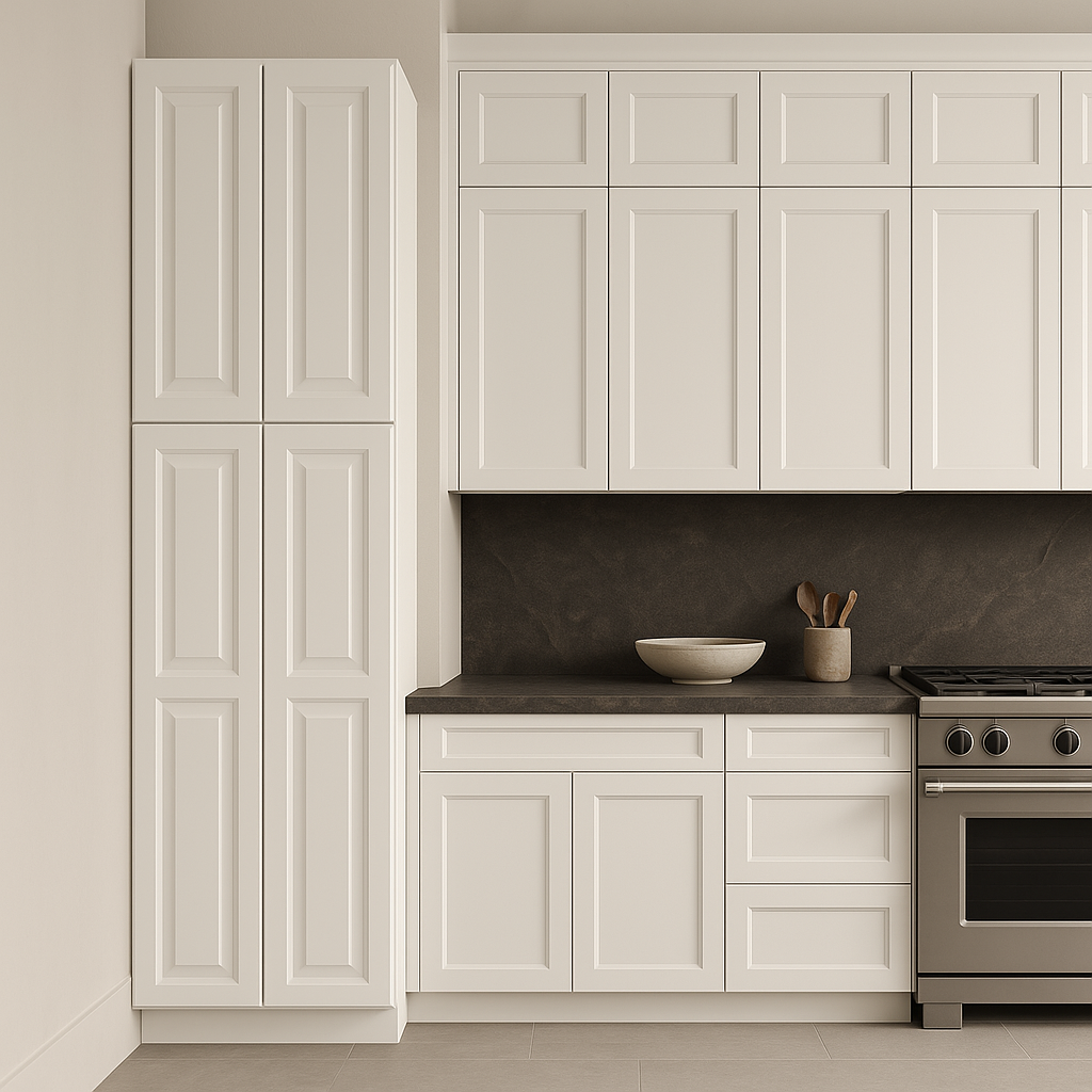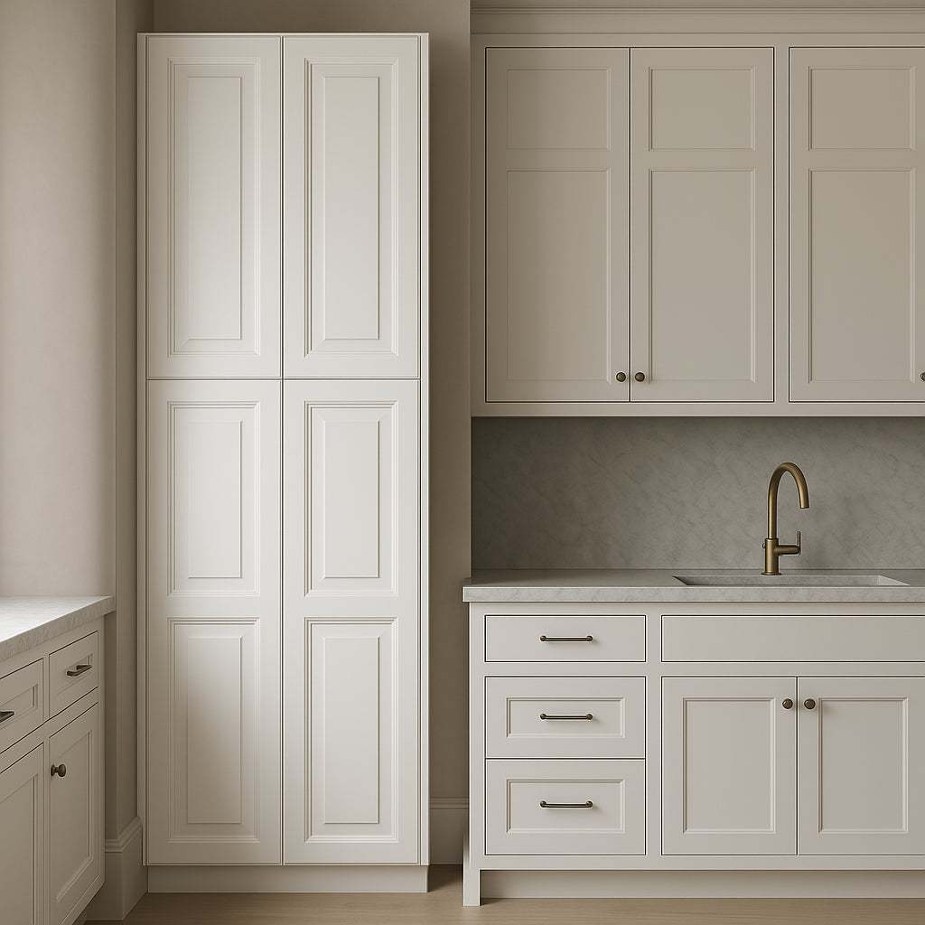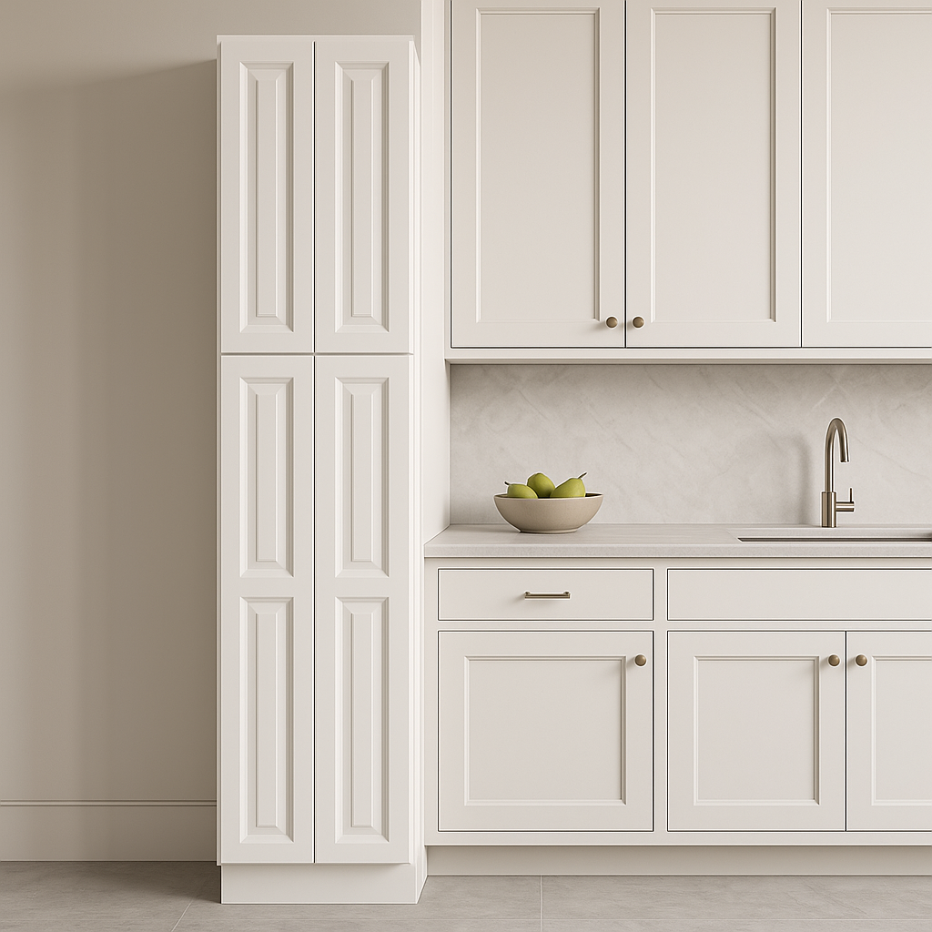 The HOMEIBRO 24-in Pantry Cabinet is a masterpiece of functional design and aesthetic appeal. Its crisp white finish and raised panel doors bring a touch of sophistication to any kitchen or living area. Pair it with modern or traditional decor to create a harmonious and organized space. This cabinet is not just storage—it's a statement of style and practicality.