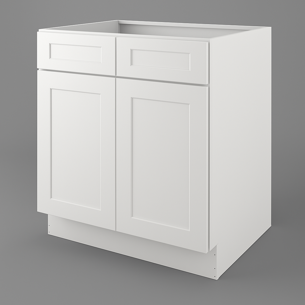 HOMEIBRO White Plywood Shaker Base Kitchen Cabinet with 2-Door and 2-Drawer (30 in. W x 24 in. D x 34.5 in. H)