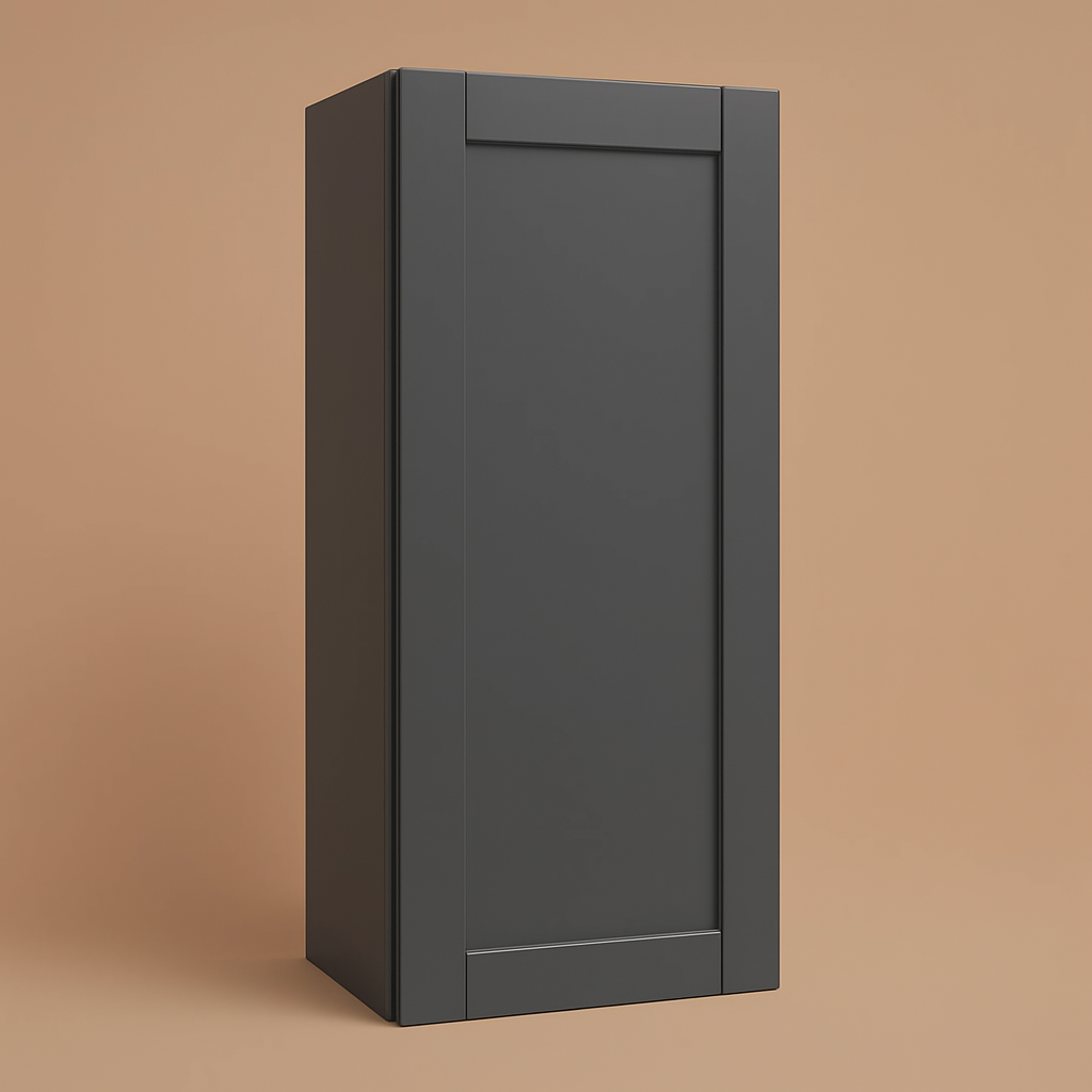 The Richmond Venetian Onyx Wall Kitchen Cabinet is a masterpiece of modern design, blending deep gray tones with a sleek shaker-style aesthetic. Its thermofoil finish adds a touch of sophistication, while the contrasting white back panel introduces a unique architectural detail. Style it with brushed nickel hardware to create a harmonious and luxurious kitchen space. This cabinet is not just storage—it's a statement of refined taste.