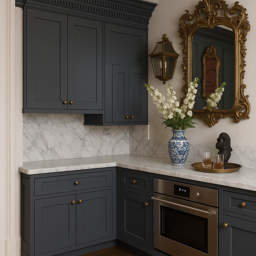 The MILL'S PRIDE Richmond Venetian Onyx Shaker Wall Cabinet combines modern design with durable construction. Featuring a dark gray thermofoil finish and plywood box material, this cabinet is perfect for upgrading your kitchen with style and functionality.