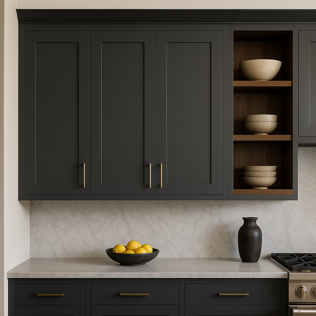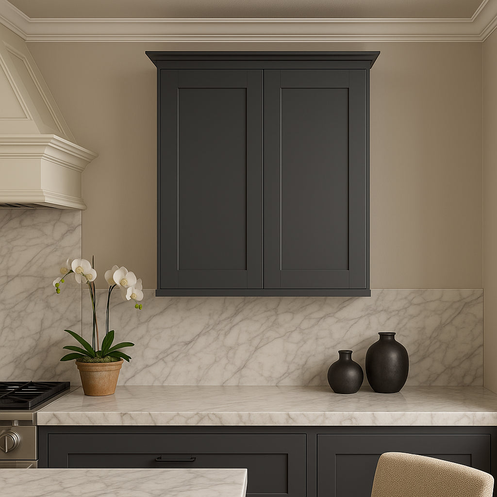 - Elegant Design: Shaker style with a deep gray Venetian Onyx finish.