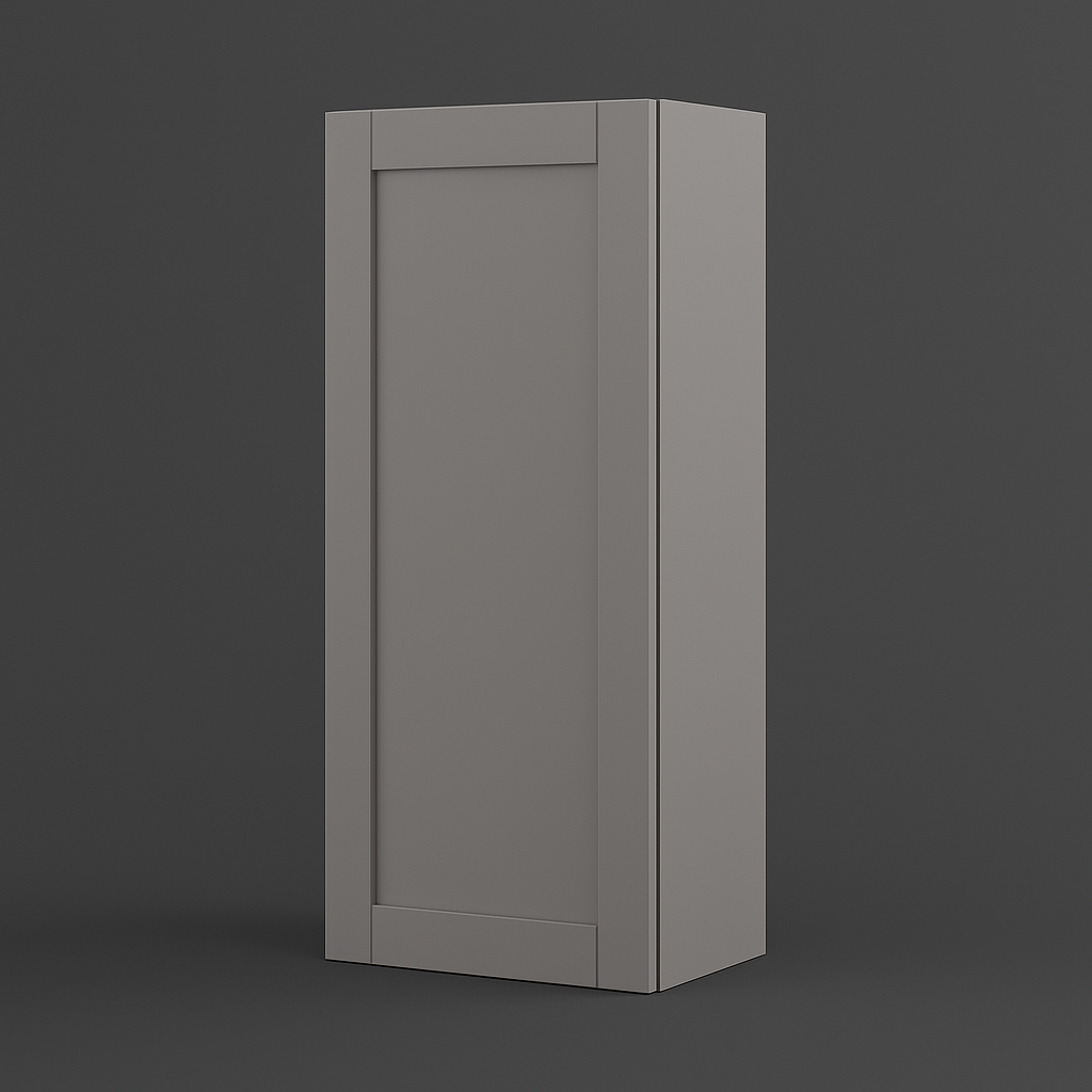 The Richmond Vesuvius Gray Wall Kitchen Cabinet by MILL'S PRIDE offers a durable plywood construction with a stylish shaker design. Featuring soft-close doors and adjustable shelves, this cabinet is perfect for modern kitchens.