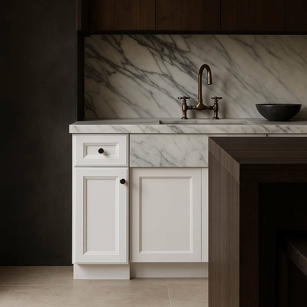 • Premium Finish: White painted finish with soft-close doors and drawers.