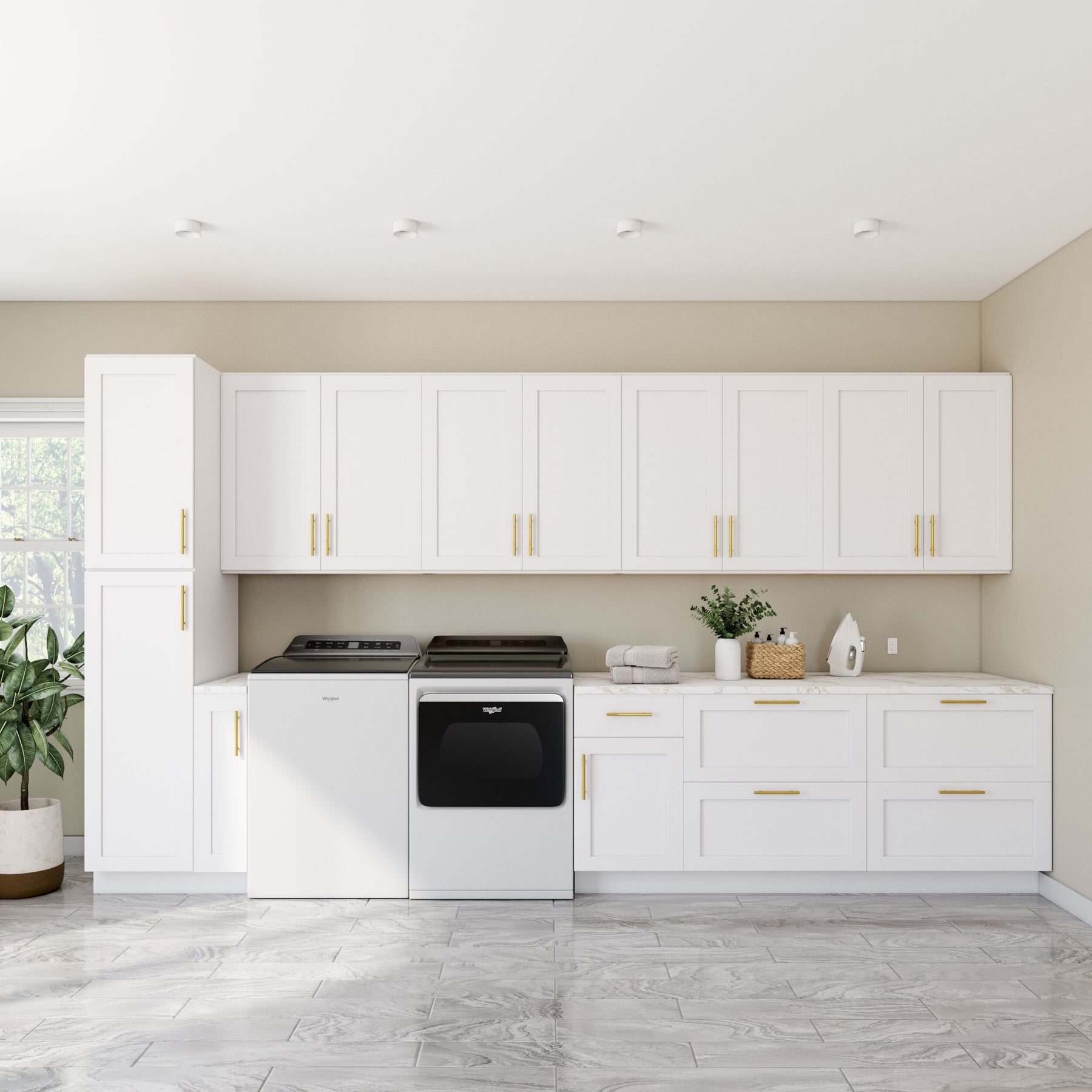 The RELIABILT Fairplay 36-inch Wall Cabinet combines style and function with its modern Shaker design and robust plywood construction. Perfect for kitchens, bathrooms, or utility rooms, this cabinet offers a matte white finish for elegant simplicity and is effortlessly easy to assemble.