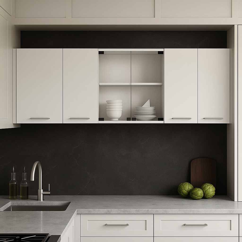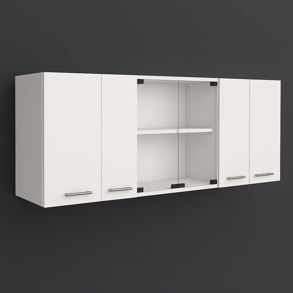 This kitchen cabinet transforms your space with its sleek design and functional layout. The glass-centered shelf area adds a touch of sophistication, perfect for displaying your finest dishware. Pair it with modern stainless steel appliances for a cohesive look. Essential for creating a stylish and organized kitchen, this cabinet is a blend of beauty and practicality.