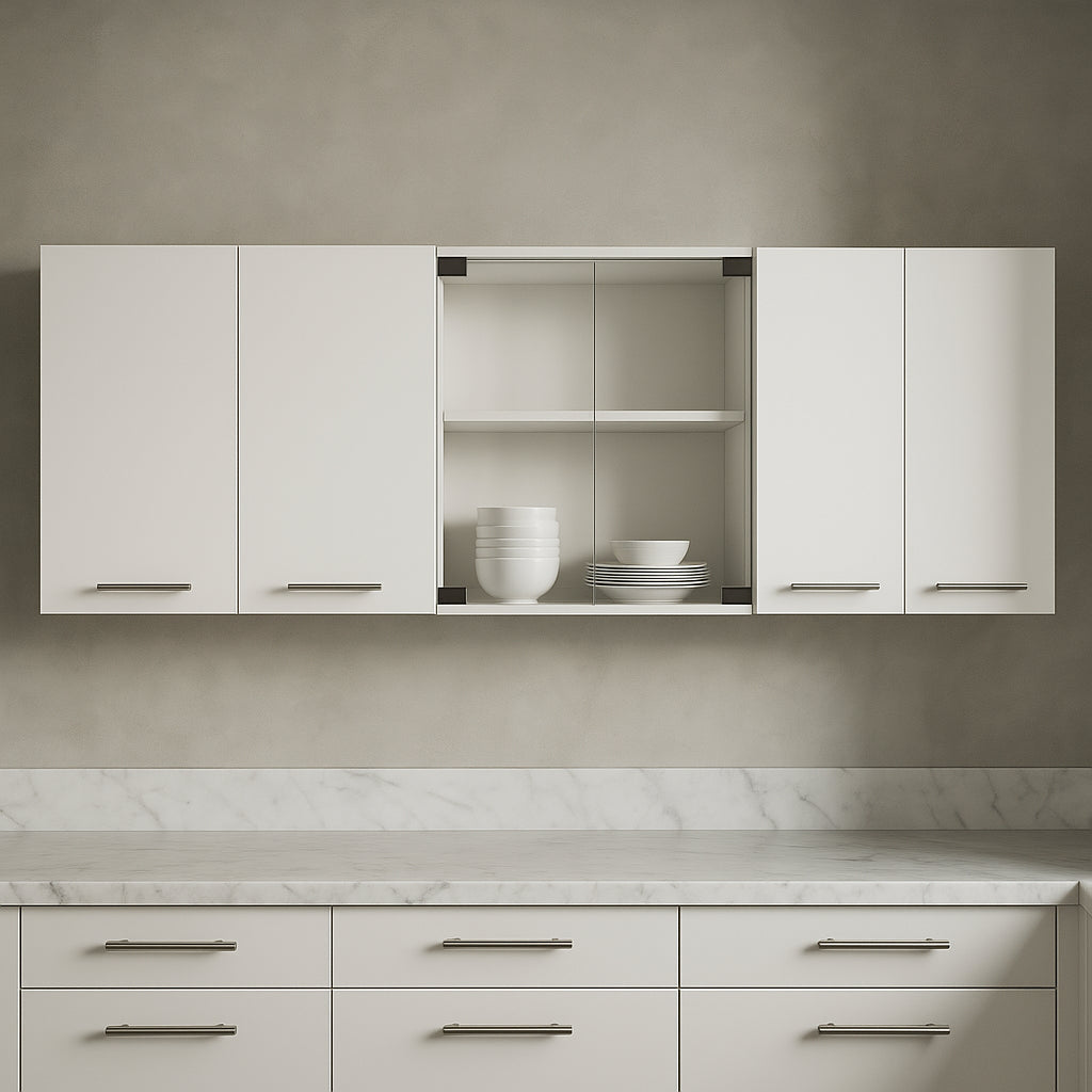 Unbranded White Plywood Kitchen Cabinet with Glass Center - 59-in W x 12.4-in D x 24-in H