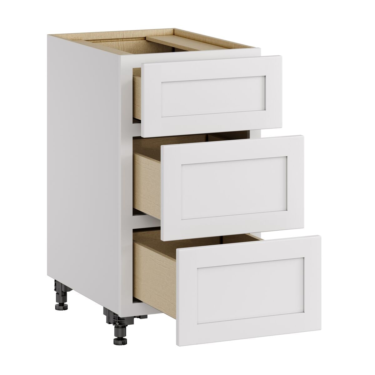 Elevate your home organization with the Whalen CLICK-IT Enfield 3-Drawer Base Cabinet. Built from durable classic white birch plywood with a raised panel style, this cabinet offers effortless tool-free assembly thanks to innovative Threespine technology. Designed for a versatile application across various rooms, its transitional style suits both modern and traditional aesthetics.