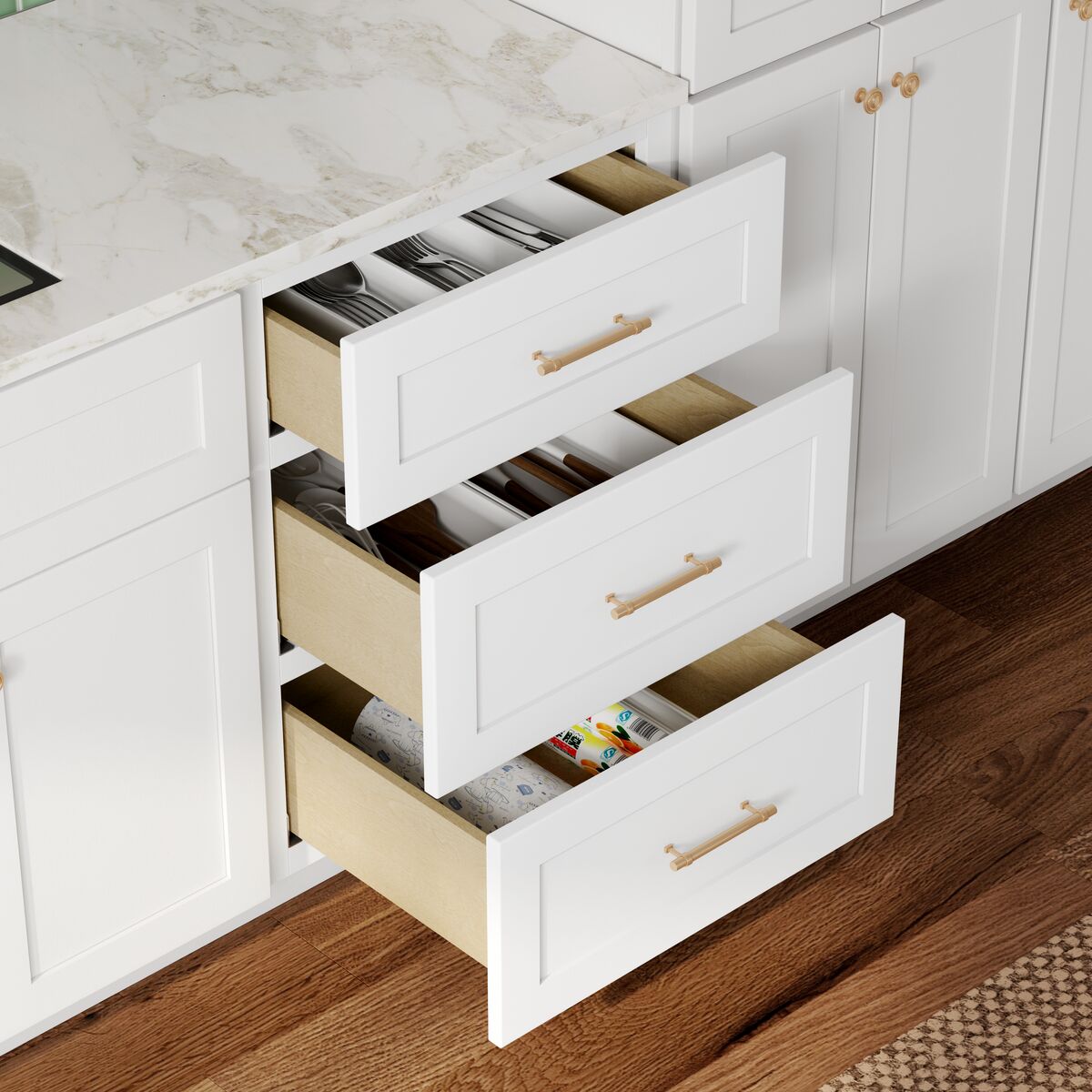Whalen CLICK-IT Enfield 24-in W x 34.5-in H x 24-in D Classic White Birch 3-Drawer Base Ready To Assemble Plywood Cabinet (Raised Panel Style)