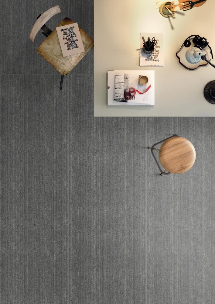 Creates the illusion of a finely textured fabric in a glazed porcelain finish and various sizes