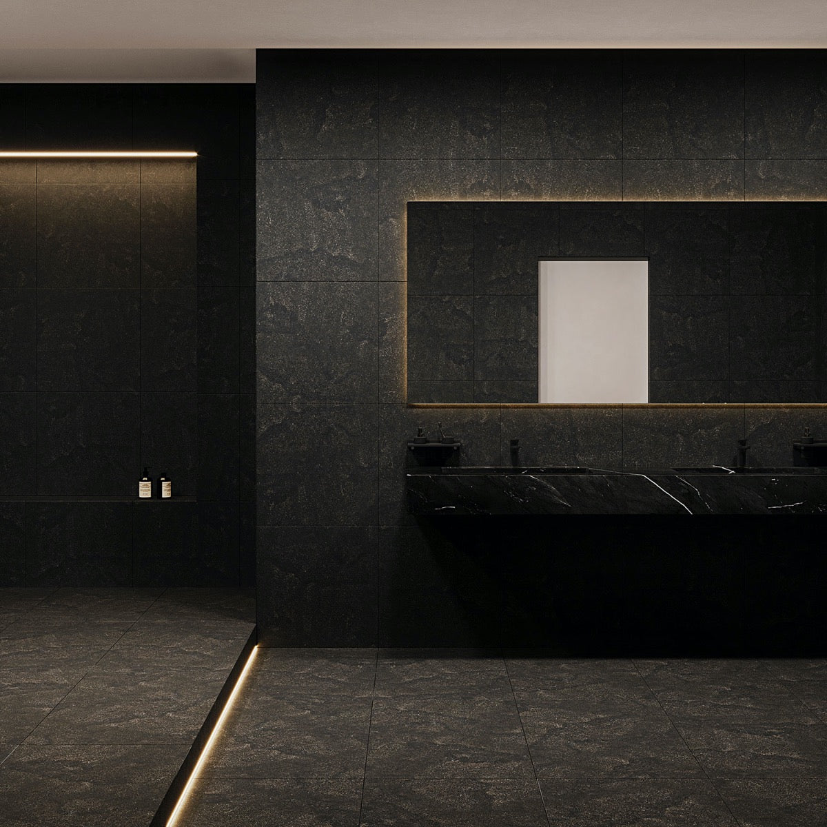 The Acadia Charcoal Black Matte Porcelain Tile is a masterpiece of understated luxury. Its deep charcoal tones and limestone-inspired texture create a grounding presence in any room. Pair it with warm wood accents and soft lighting to enhance its natural beauty. This tile is not just a surface; it's a statement of refined taste and enduring style.