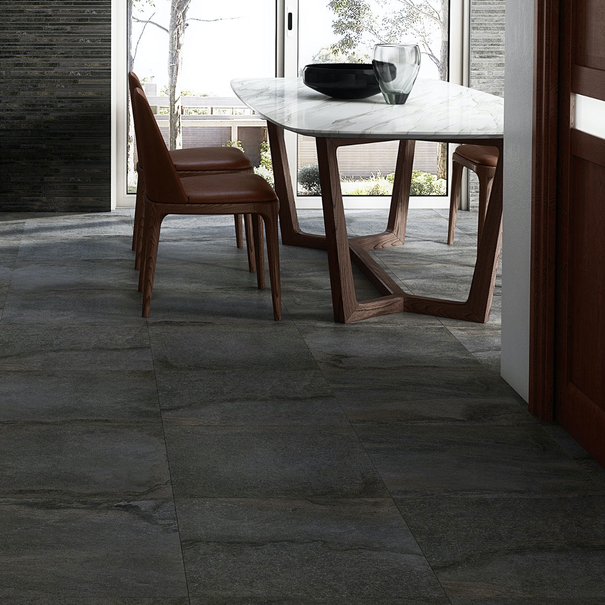 Transform your space with the timeless elegance of the Acadia Charcoal Black Matte Porcelain Tile.