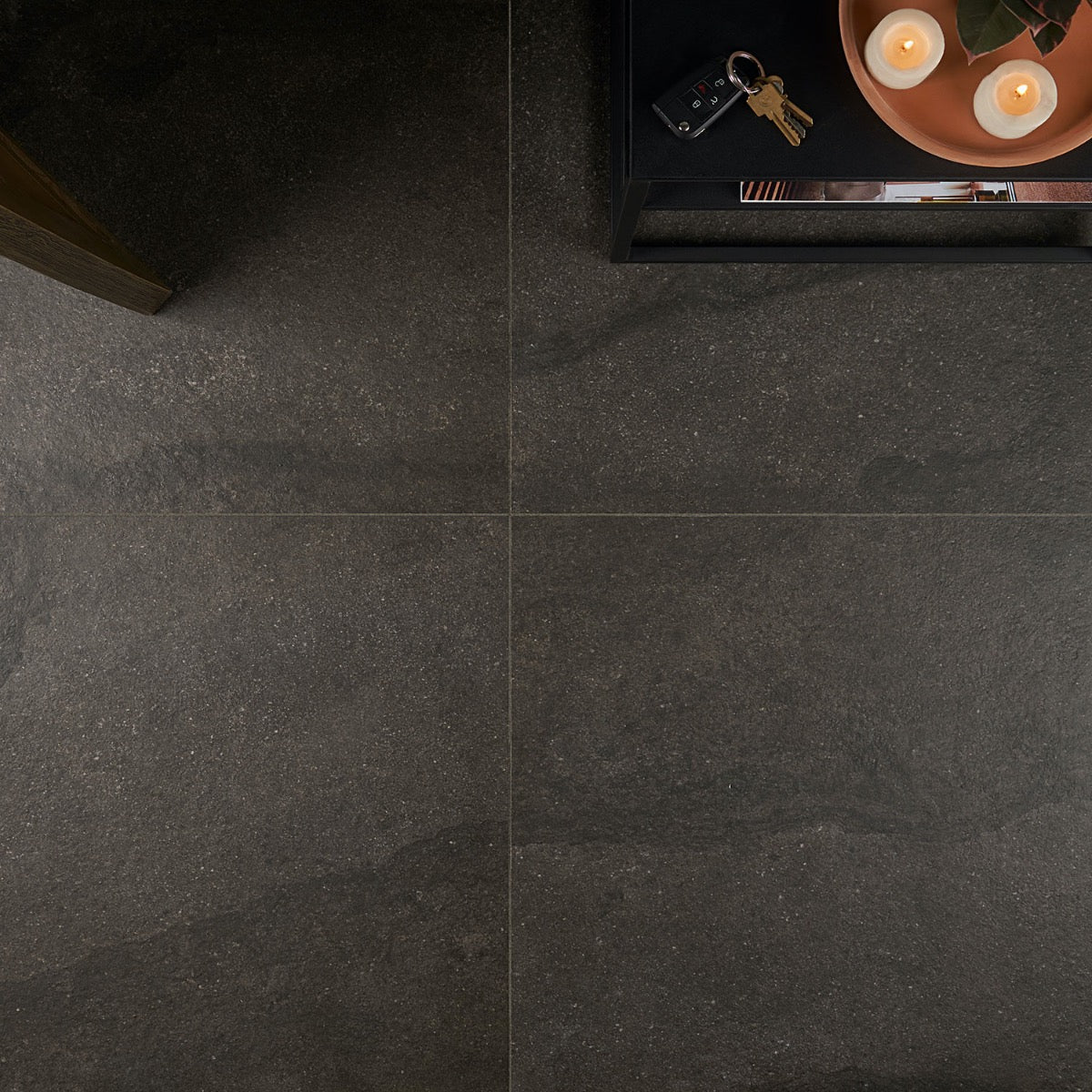 Acadia Charcoal Black 24x24 Matte Porcelain Tile - Limestone Look