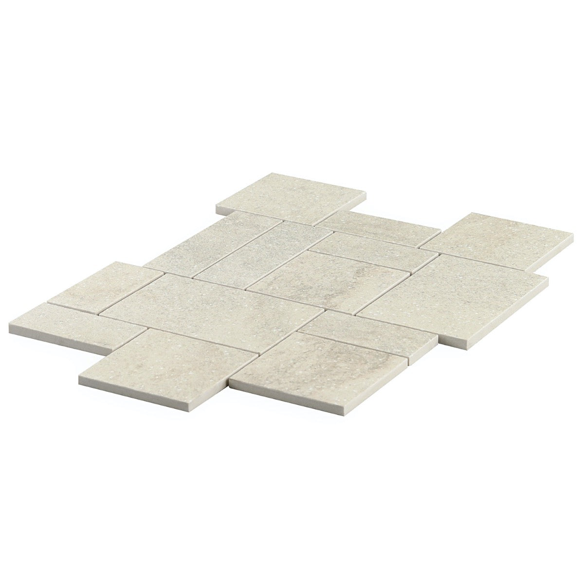 The Acadia French Pattern Linen White Matte Porcelain Mosaic Tile combines the timeless elegance of natural limestone with the durability of porcelain. Its matte finish and warm tones make it a versatile choice for both indoor and outdoor spaces.