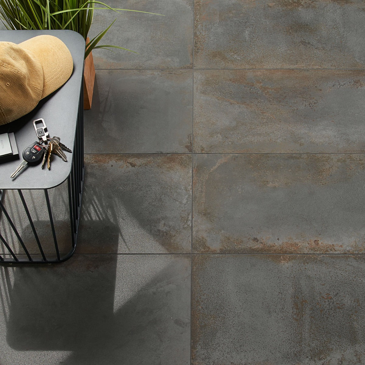 Transform your space with the industrial elegance of the Flatiron Graphite Gray Tile—order now to redefine your interiors.