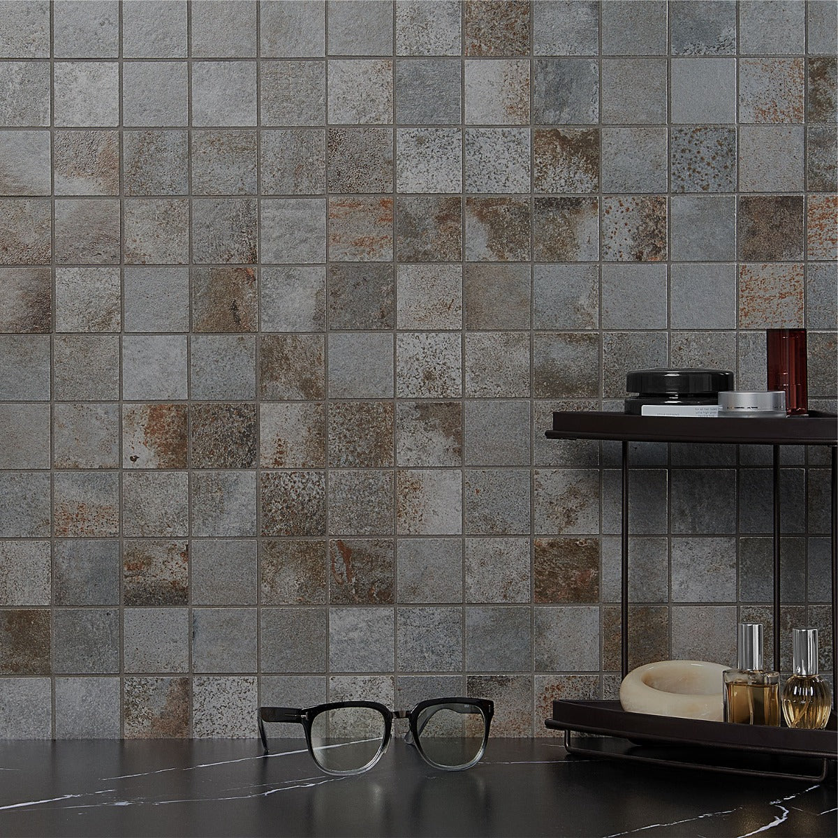 • Elegant Patina Effect: Features a cement look with metallic edges and a matte finish.